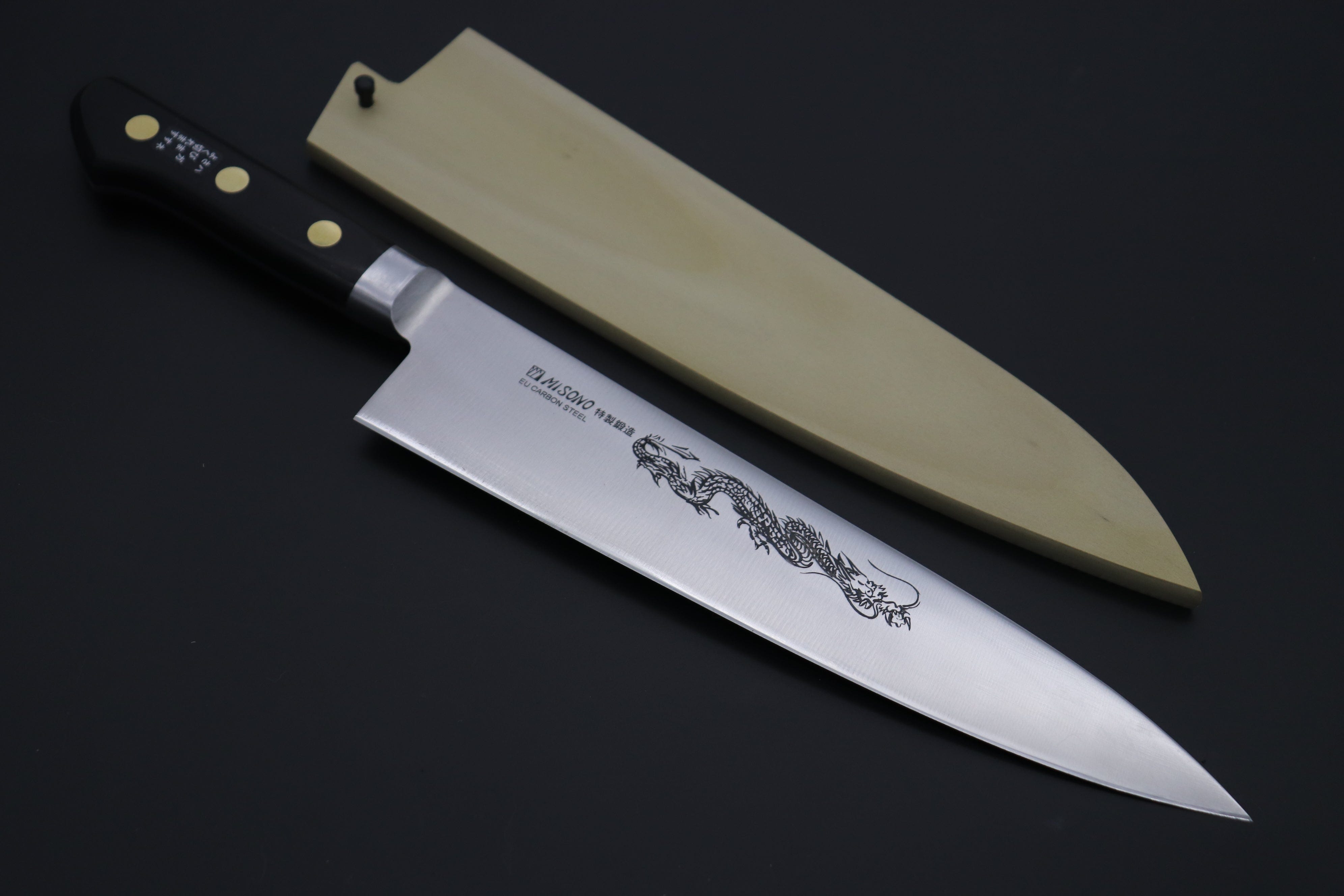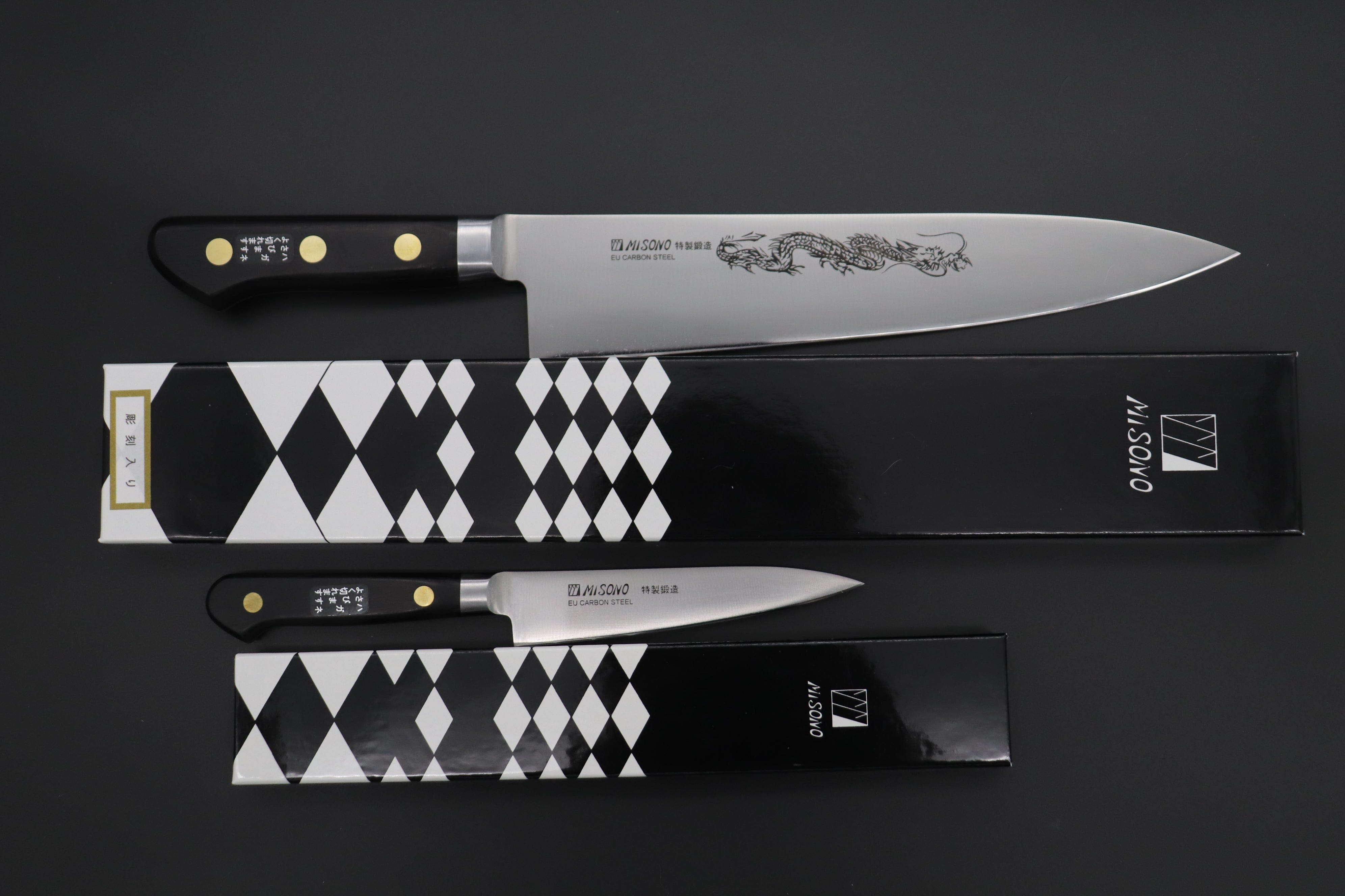Knife Model: Misono Final Discount !! "Carbon Steel Lover 2Pcs Set" Sweden Steel Series No.131 Petty 120mm (4.7 inch) and No.113 Gyuto 240mm (9.4 Inch) (comes with Magnolia Wooden Sayas + Tsubaki Oil)