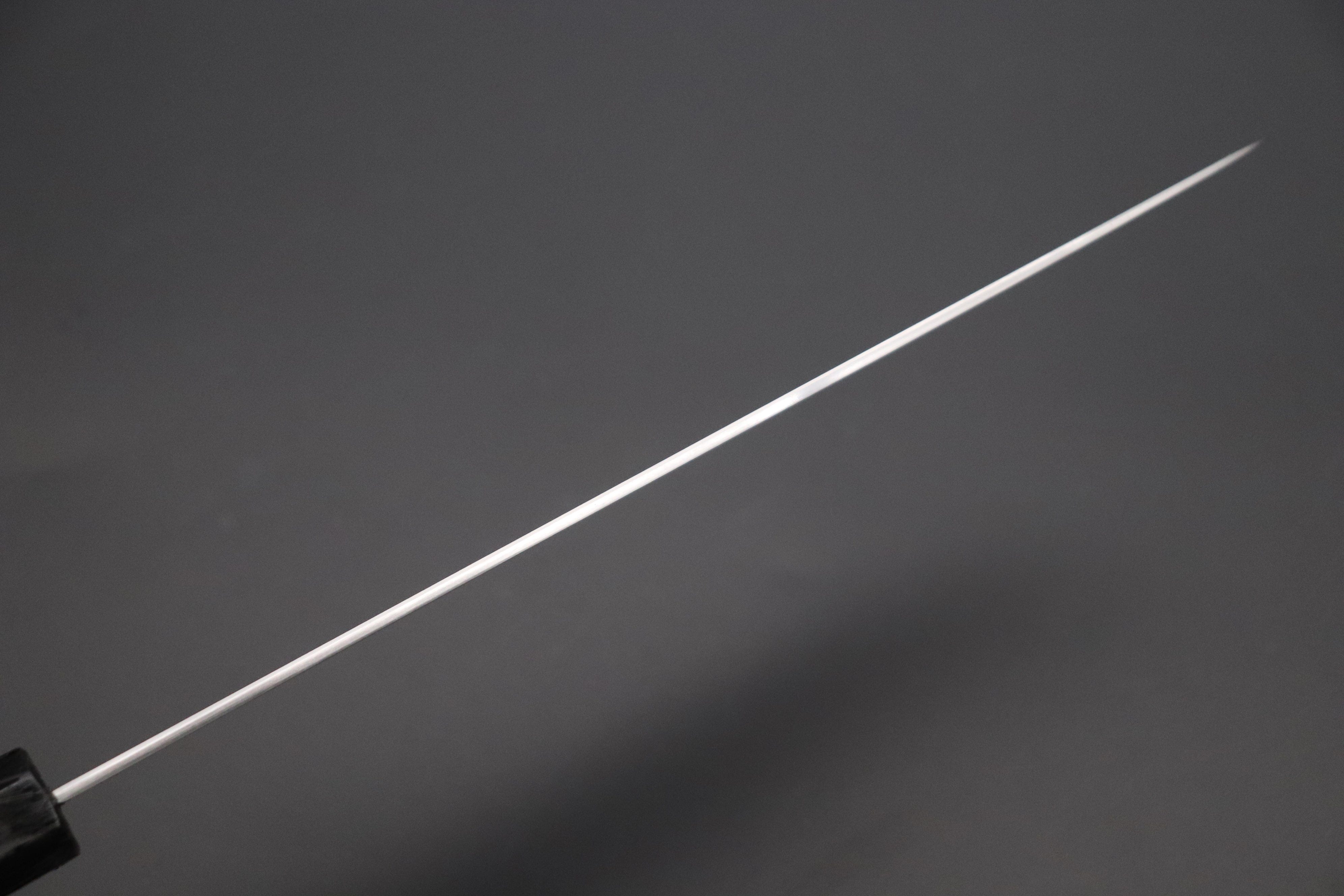 Sukenari’s knowledge of traditional forging processes and their extensive experience with modern, high performance, steels proved to be invaluable while perfecting these new HAP-40 knives. Master Hanaki, Sukenari’s innovative and energetic knife maker and Master forge-smith, has successfully managed to extract the best cutting performance and edge retention from these HAP-40 knives (HRc. 68). They are perfect for customers who love testing exotic hi-tech steels, or those who appreciate knives with outstanding cutting performance and edge retention.