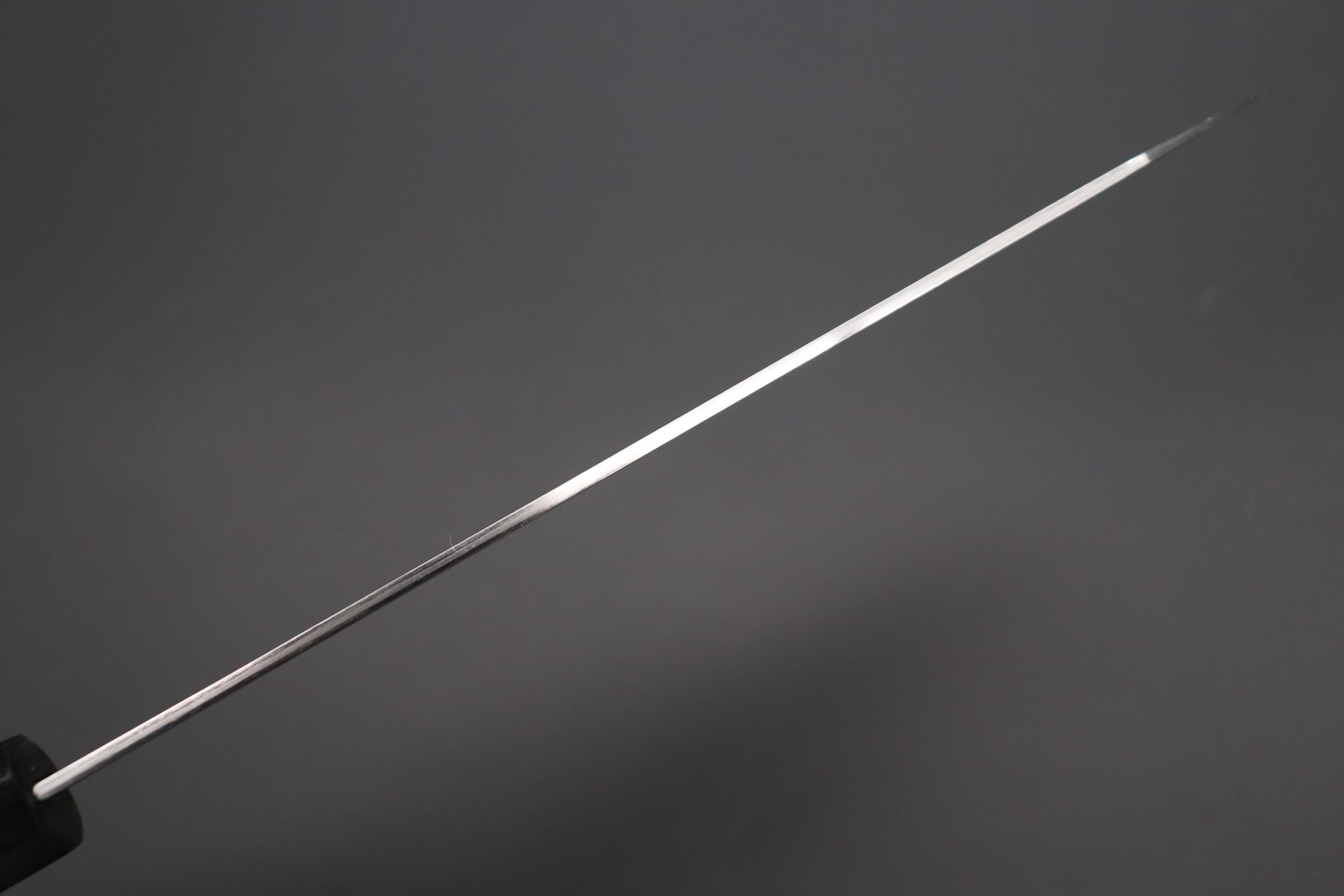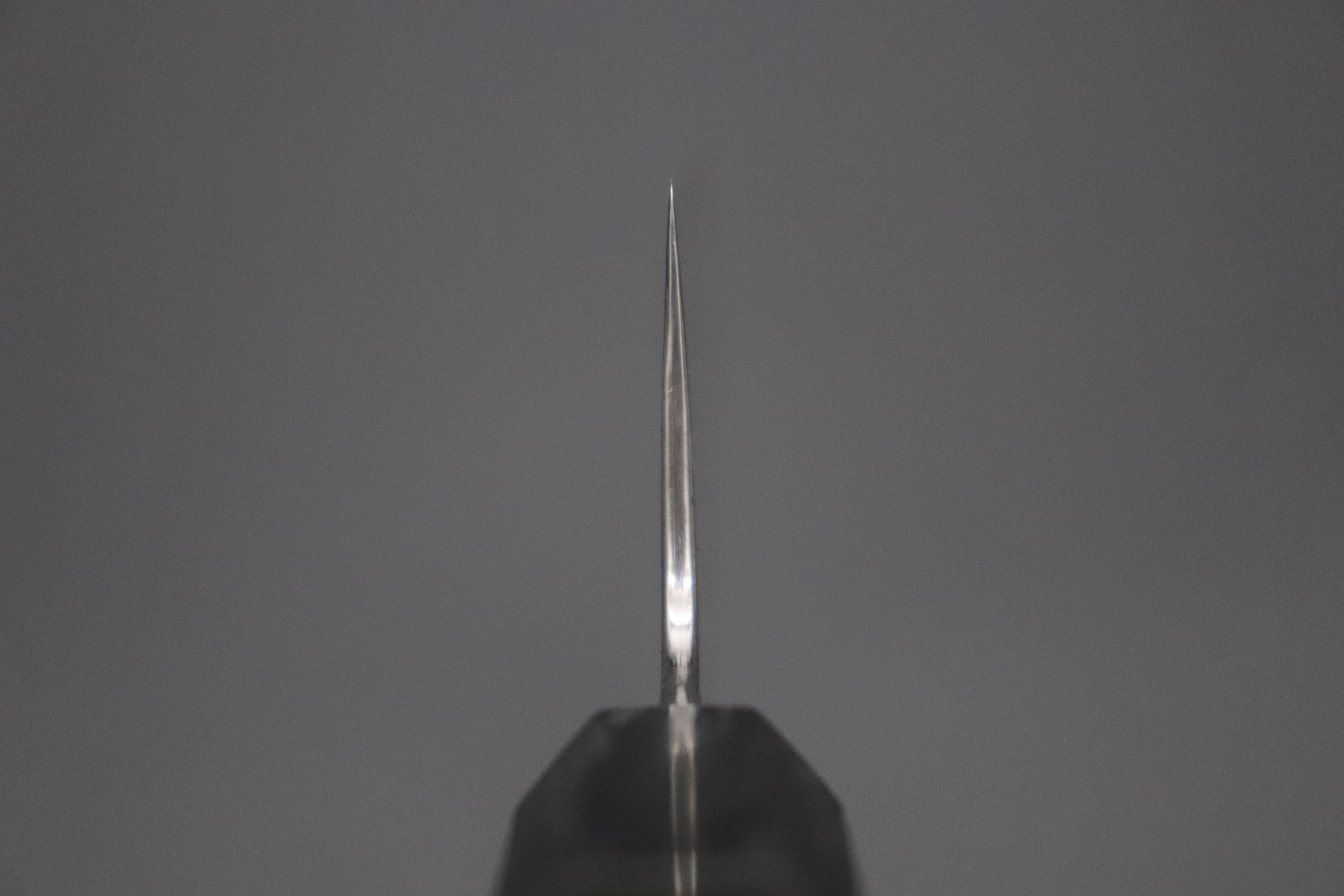 Sukenari’s knowledge of traditional forging processes and their extensive experience with modern, high performance, steels proved to be invaluable while perfecting these new HAP-40 knives. Master Hanaki, Sukenari’s innovative and energetic knife maker and Master forge-smith, has successfully managed to extract the best cutting performance and edge retention from these HAP-40 knives (HRc. 68). They are perfect for customers who love testing exotic hi-tech steels, or those who appreciate knives with outstanding cutting performance and edge retention.