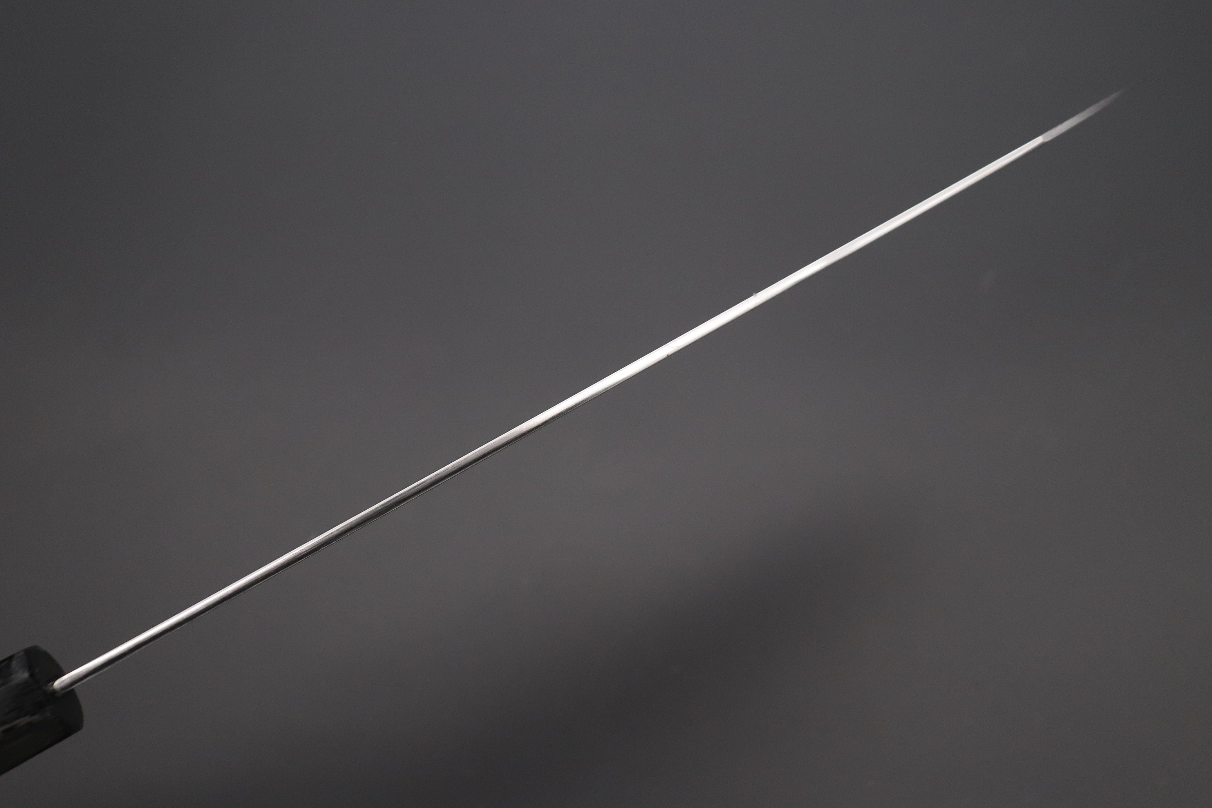 Sukenari’s knowledge of traditional forging processes and their extensive experience with modern, high performance, steels proved to be invaluable while perfecting these new HAP-40 knives. Master Hanaki, Sukenari’s innovative and energetic knife maker and Master forge-smith, has successfully managed to extract the best cutting performance and edge retention from these HAP-40 knives (HRc. 68). They are perfect for customers who love testing exotic hi-tech steels, or those who appreciate knives with outstanding cutting performance and edge retention.