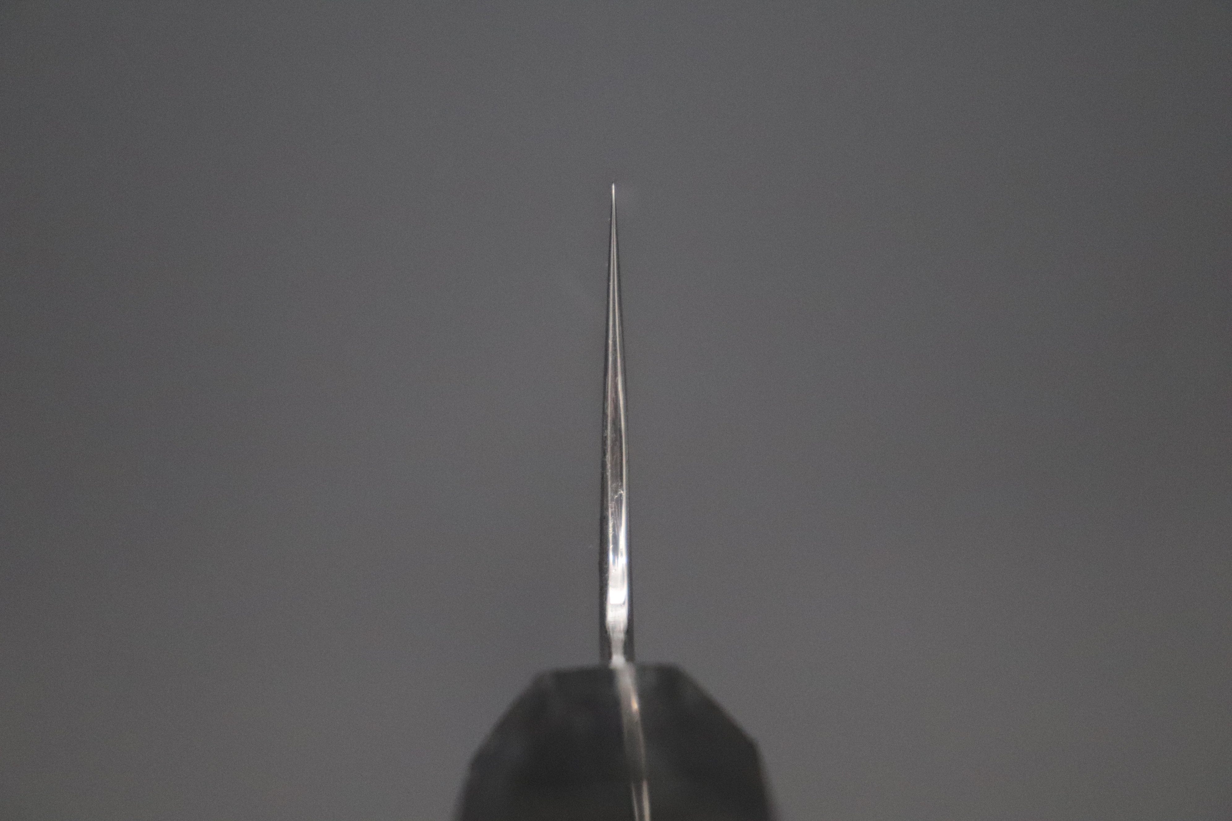 The Kirisuke-Gyuto has a very similar blade profile to the ‘regular’ Gyuto, but it has what is commonly known as a 'reverse tanto' tip, or ‘clipped point’, which is very useful for precision cutting. Apart from this difference, the Kirisuke-Gyuto functions in the same way as the ‘plain' Gyuto knife.