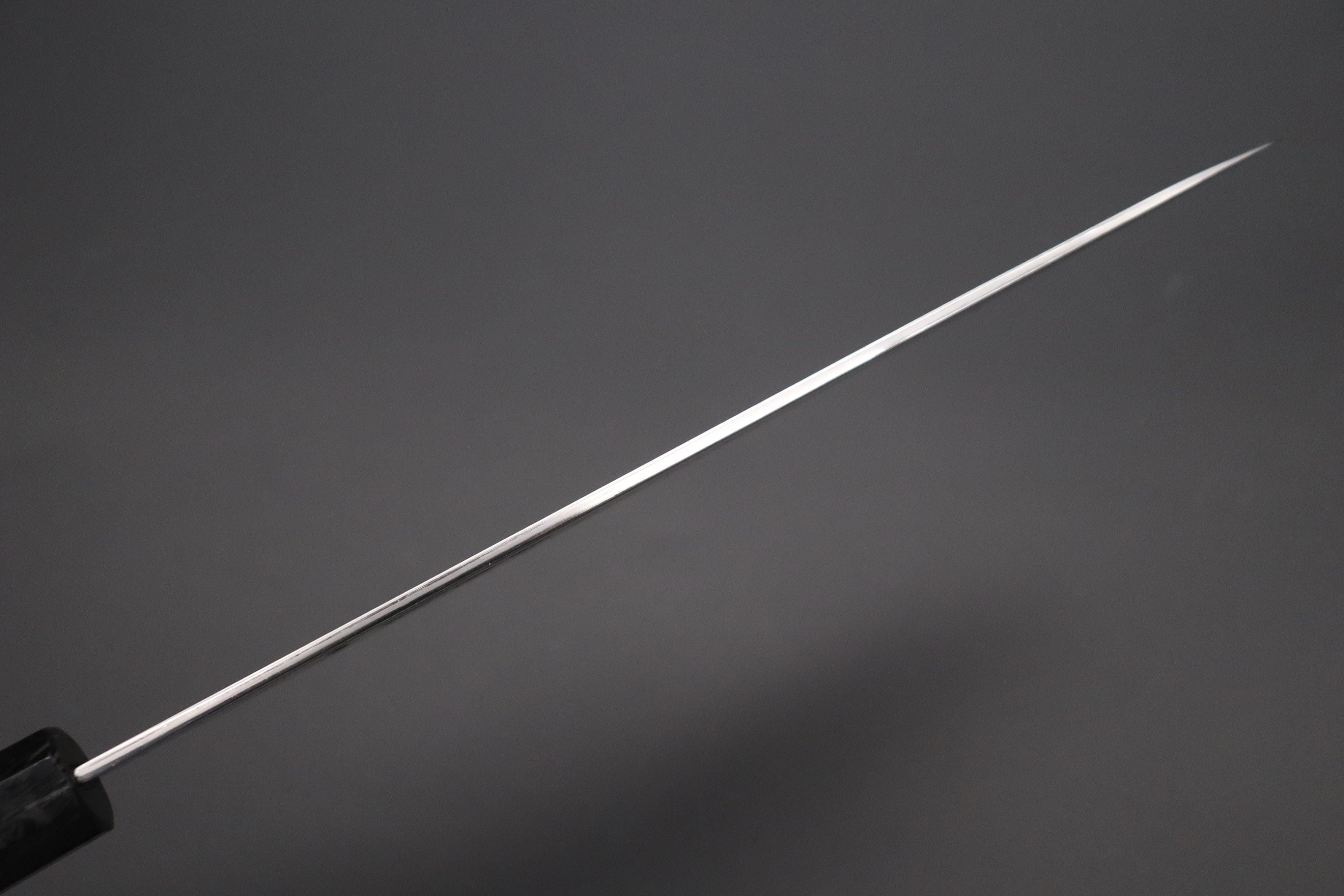 Sukenari’s knowledge of traditional forging processes and their extensive experience with modern, high performance, steels proved to be invaluable while perfecting these new HAP-40 knives. Master Hanaki, Sukenari’s innovative and energetic knife maker and Master forge-smith, has successfully managed to extract the best cutting performance and edge retention from these HAP-40 knives (HRc. 68). They are perfect for customers who love testing exotic hi-tech steels, or those who appreciate knives with outstanding cutting performance and edge retention.