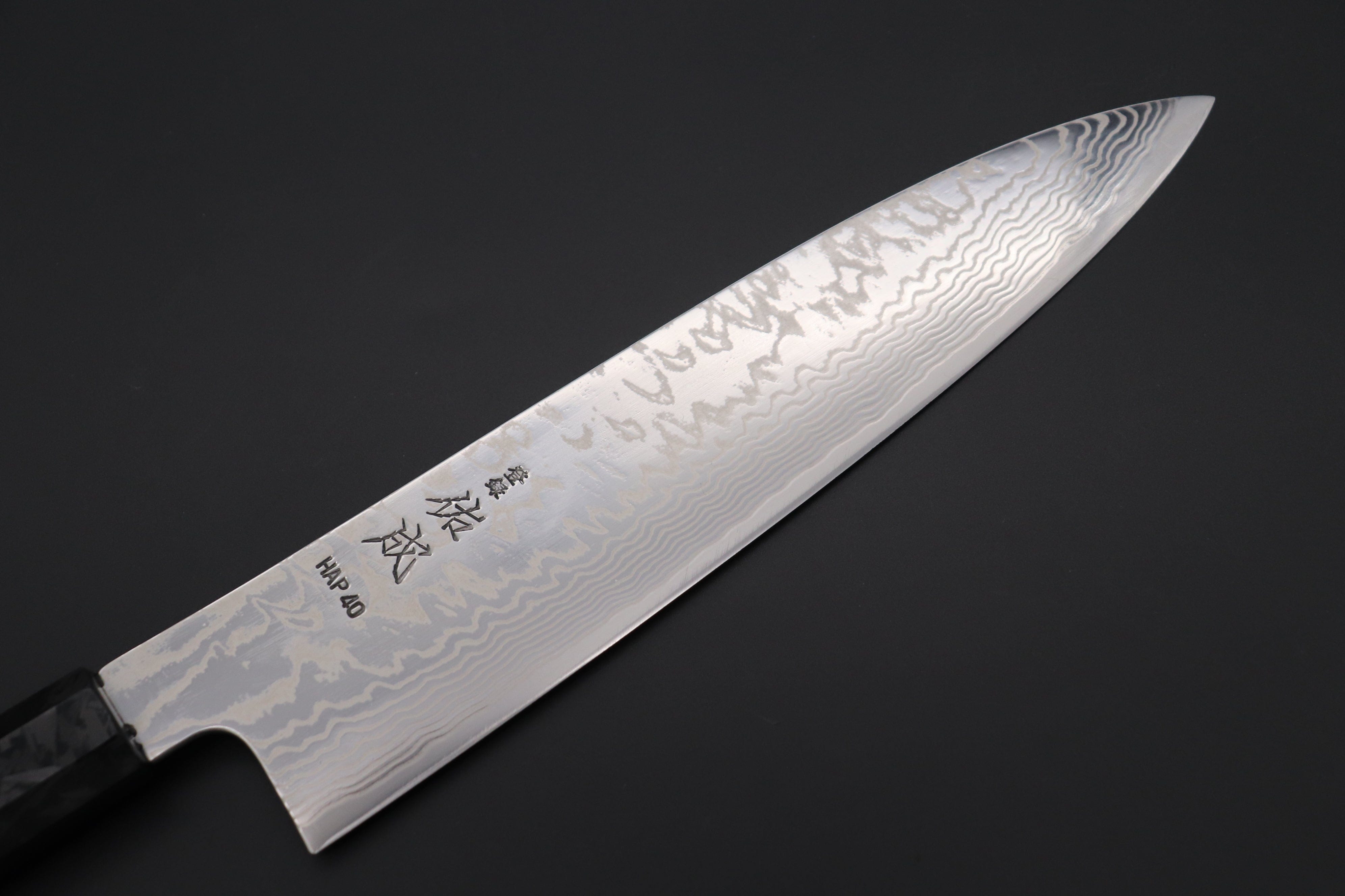 Hitachi HAP-40 is currently one of the most mysterious and attractive steels produced in Japan. This hi-tech powdered metal steel alloy has a very rich chemical position and, when it is forged and heat-treated properly, we believe that it probably offers better cutting performance and edge retention than any other high-quality Japanese steel.