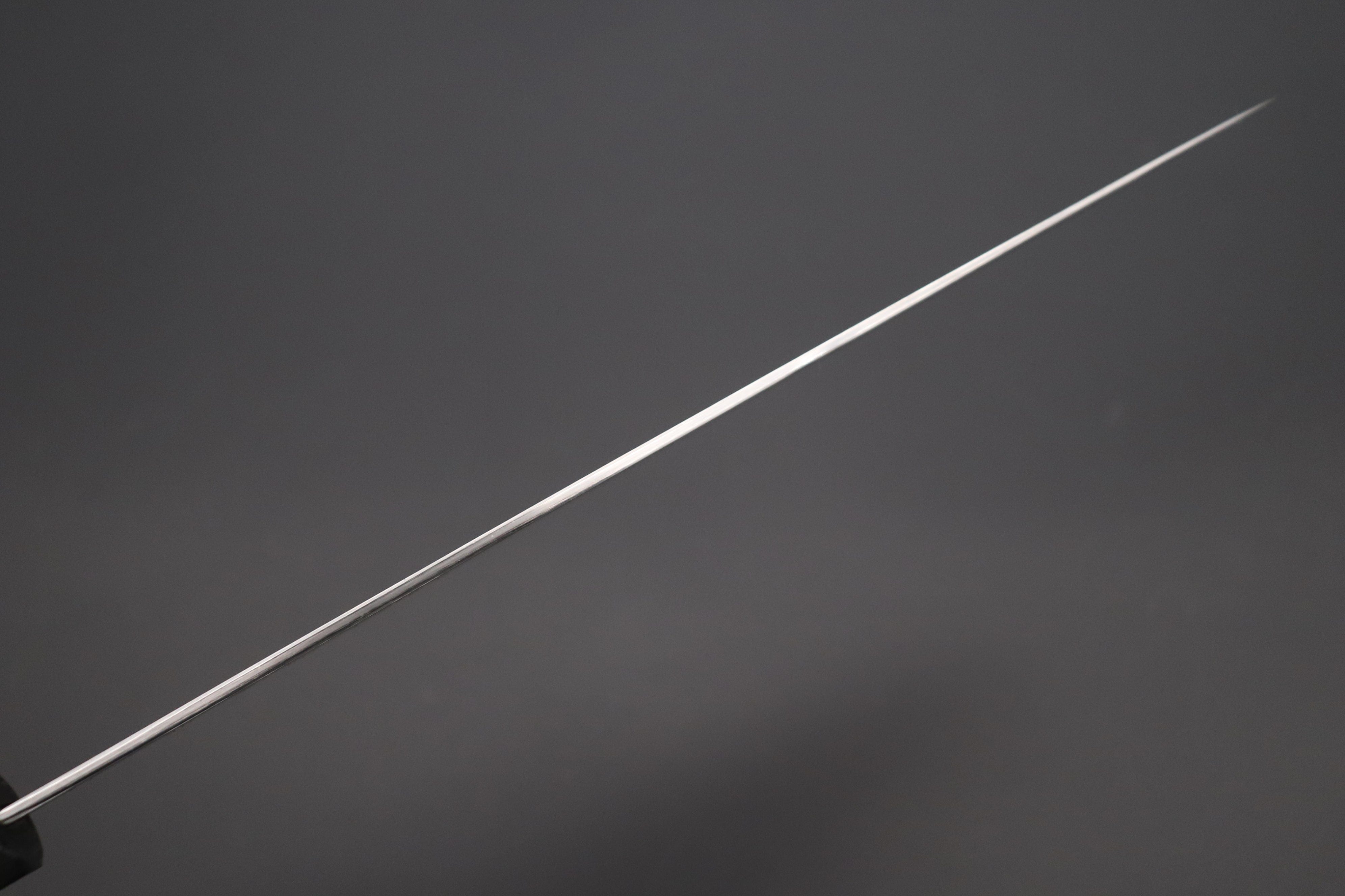 Sukenari’s knowledge of traditional forging processes and their extensive experience with modern, high performance, steels proved to be invaluable while perfecting these new HAP-40 knives. Master Hanaki, Sukenari’s innovative and energetic knife maker and Master forge-smith, has successfully managed to extract the best cutting performance and edge retention from these HAP-40 knives (HRc. 68). They are perfect for customers who love testing exotic hi-tech steels, or those who appreciate knives with outstanding cutting performance and edge retention.