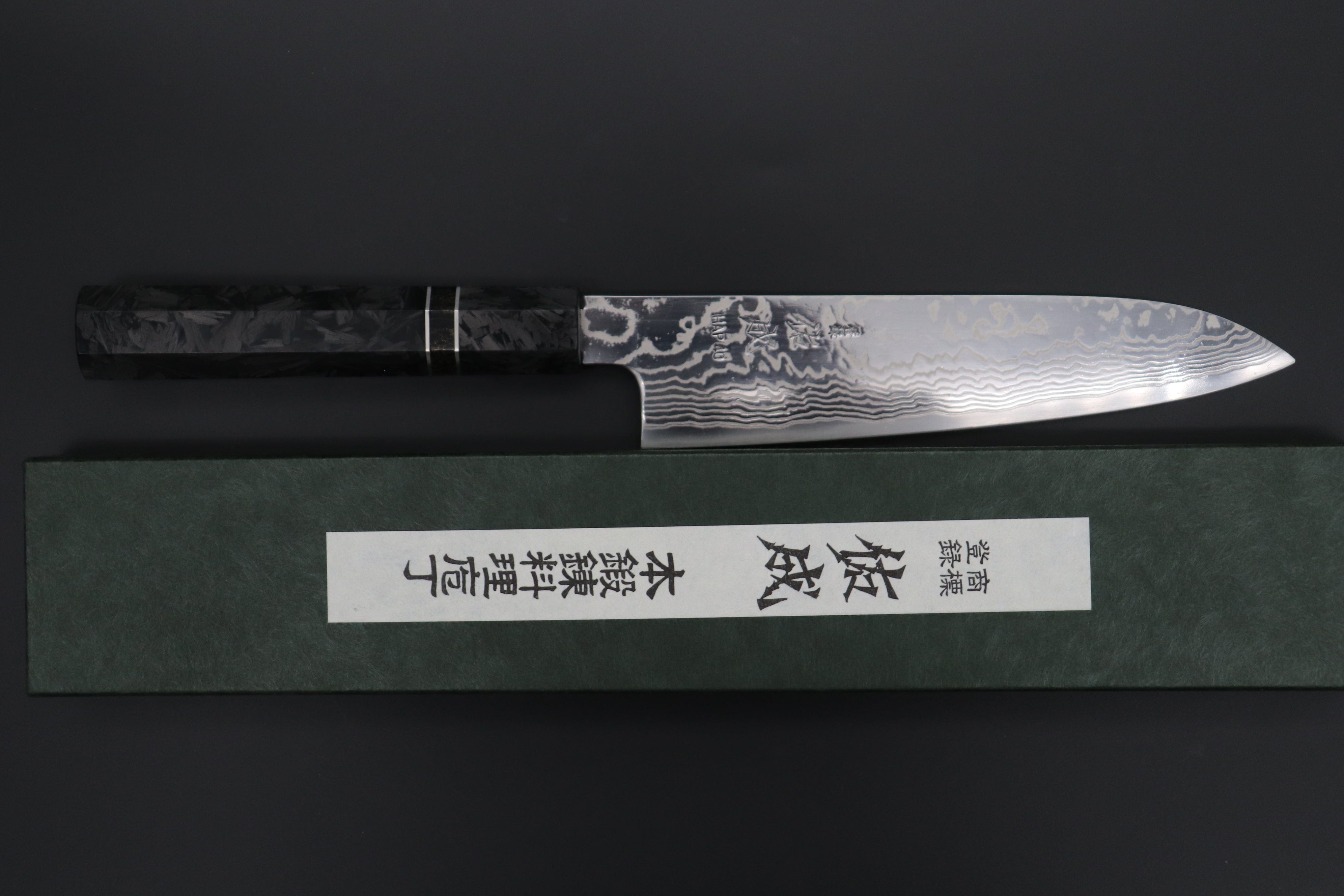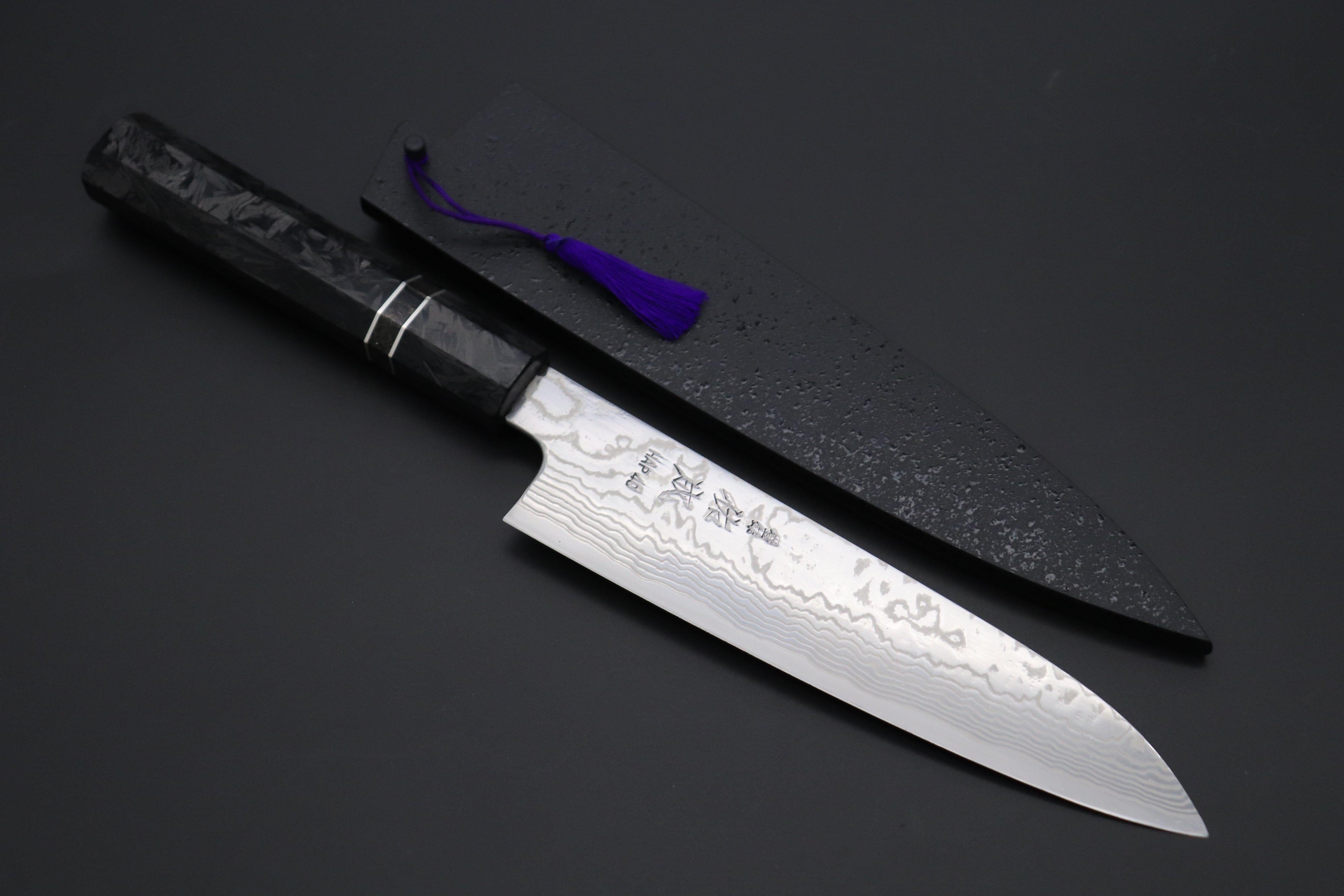 Sukenari’s knowledge of traditional forging processes and their extensive experience with modern, high performance, steels proved to be invaluable while perfecting these new HAP-40 knives. Master Hanaki, Sukenari’s innovative and energetic knife maker and Master forge-smith, has successfully managed to extract the best cutting performance and edge retention from these HAP-40 knives (HRc. 68). They are perfect for customers who love testing exotic hi-tech steels, or those who appreciate knives with outstanding cutting performance and edge retention.