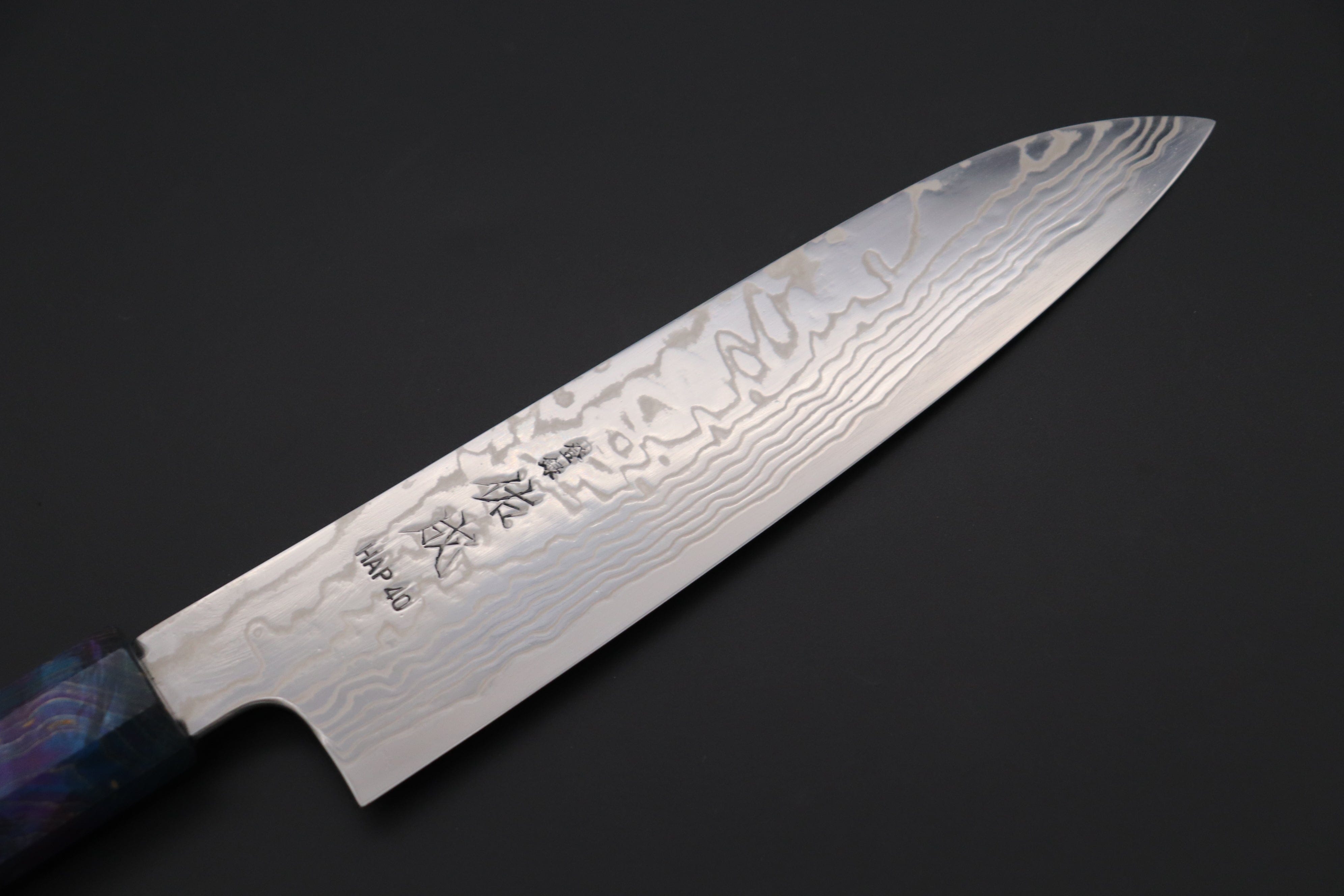 Master Hanaki believes that these new HAP-40 knives offer very competitive cutting performance and edge retention relative to his ZDP-189 and Aogami Super knives. In addition, HAP-40 offers better toughness than ZDP-189, - even when it is heat-treated to a higher Rockwell hardness. Consequently, Master Hanaki has confidence that the new Sukenari HAP-40 knives will prove to be some of the best performing and most practical knives that Sukenari offer.