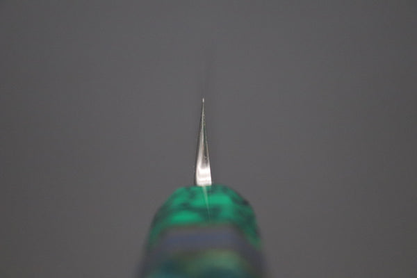 This high-grade Japanese traditional-style knife is beautifully hand sharpened using a complex hand sharpening process that uses water-cooled grinding wheels. This is one of the most important handcrafting processes, as it allows Sukenari to make knives that possess excellent blade geometry and cutting performance.