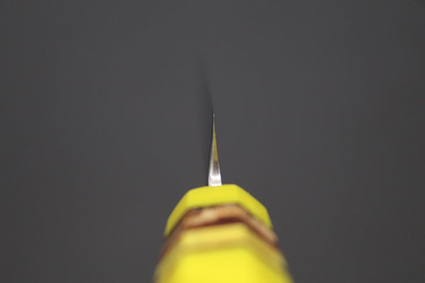 This high-grade Japanese traditional-style knife is beautifully hand sharpened using a complex hand sharpening process that uses water-cooled grinding wheels. This is one of the most important handcrafting processes, as it allows Sukenari to make knives that possess excellent blade geometry and cutting performance.