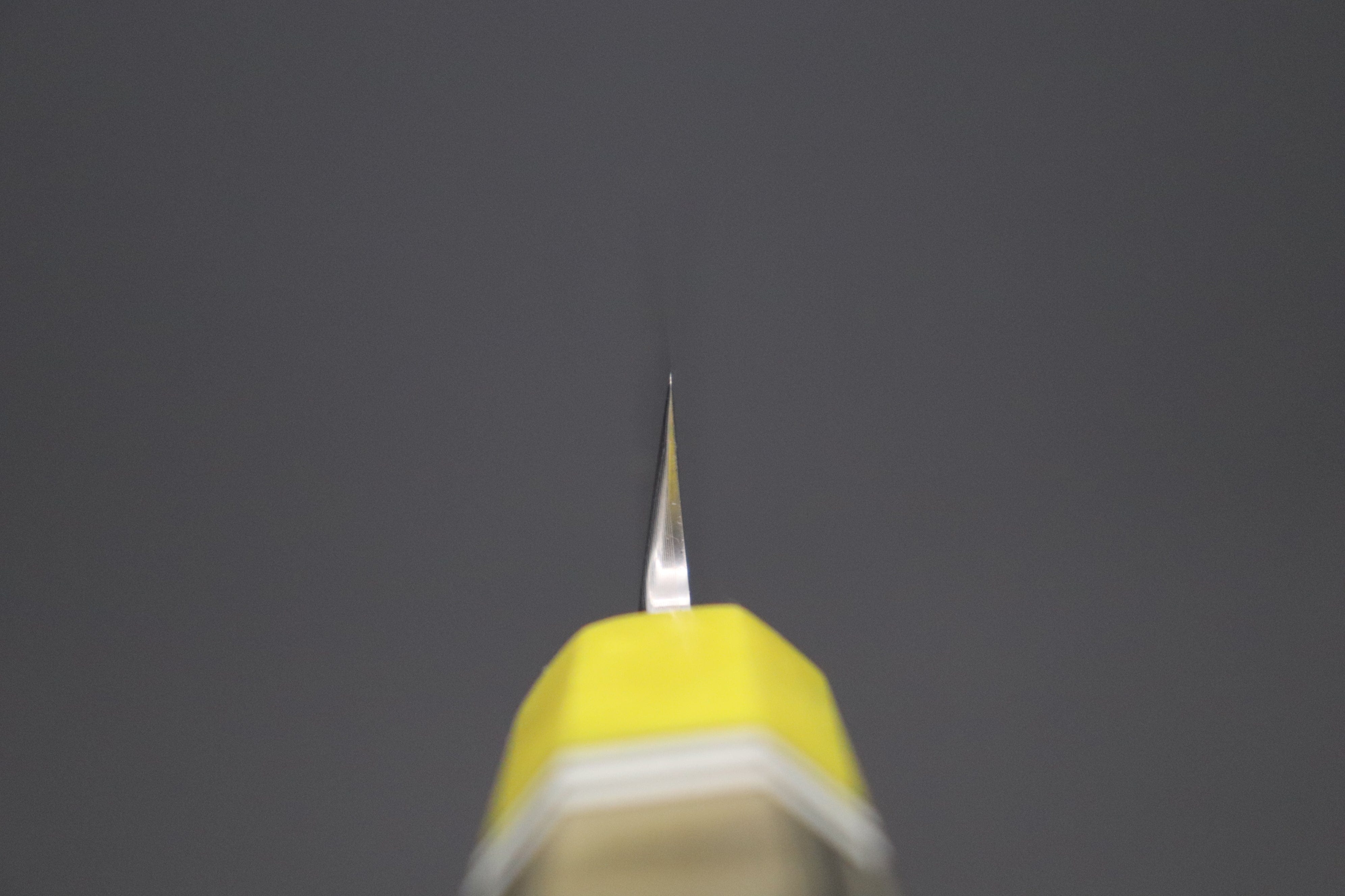 This high-grade Japanese traditional-style knife is beautifully hand sharpened using a complex hand sharpening process that uses water-cooled grinding wheels. This is one of the most important handcrafting processes, as it allows Sukenari to make knives that possess excellent blade geometry and cutting performance.