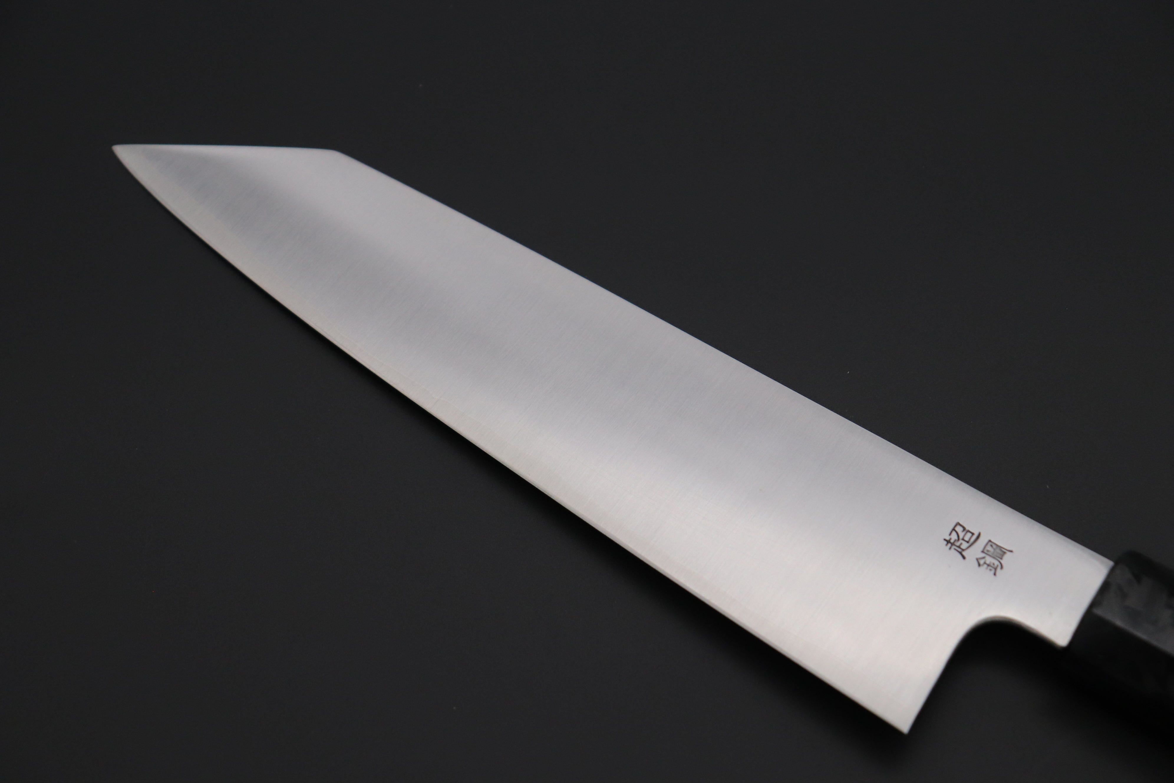 The stylish and versatile Kiritsuke-Gyuto is becoming more common and popular in recent years. The triangular tip area is particularly useful for detailed work and cutting fish or meat. It is a very versatile knife that can be used to perform many of the tasks normally done with a Gyuto.