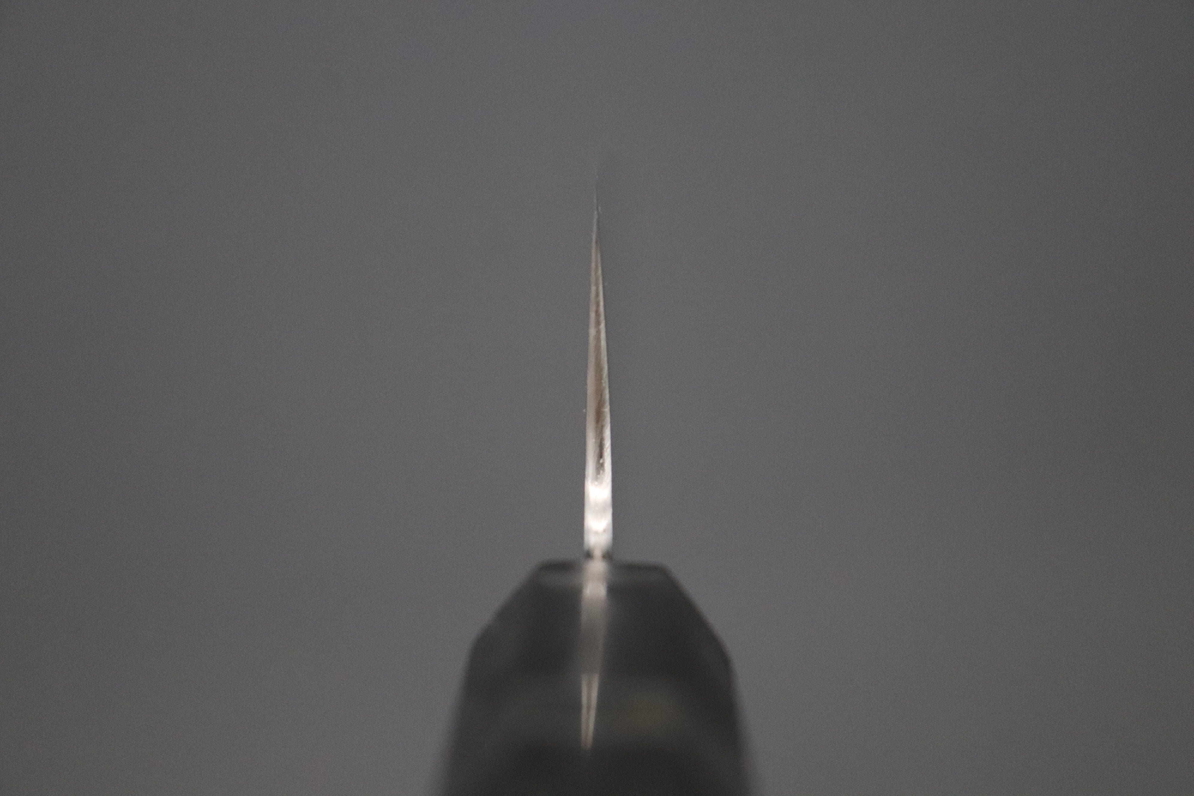 The ZDP-189 Wa Gyuto knife is made using difficult and time-consuming forging processes and hand sharpening processes. Passionate Forge-Smith Sukenari has devoted many years to testing and refining this ZDP-189 knife production techniques, and these incredible knife stand as a testament to their hard work and their hammer forging expertise.