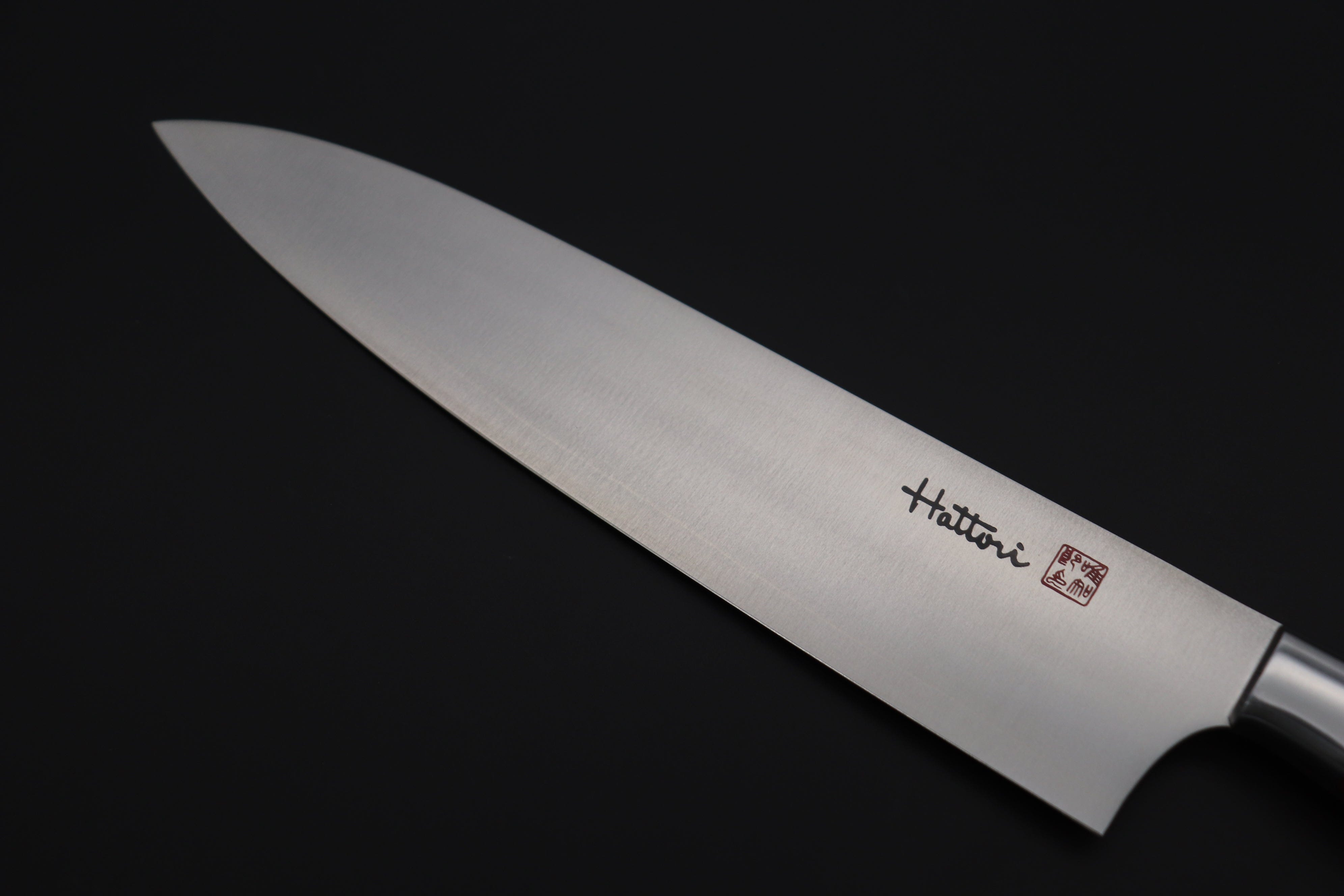 Hattori wanted to proudly show the advantages of the “SAN-MAI” (“3-layer”) blade construction technique and Japan’s most reputable stainless steel, VG-10. The wide exposure of the VG-10 core near the edge gives the blade a distinctive, solid appearance — conveying both strength and refined elegance. We believe our customers will enjoy the exceptional cutting precision and smooth, sturdy feel of these knives, which is quite similar to a mono-steel knife due to the careful selection of tough 420J2 stainless steel cladding.