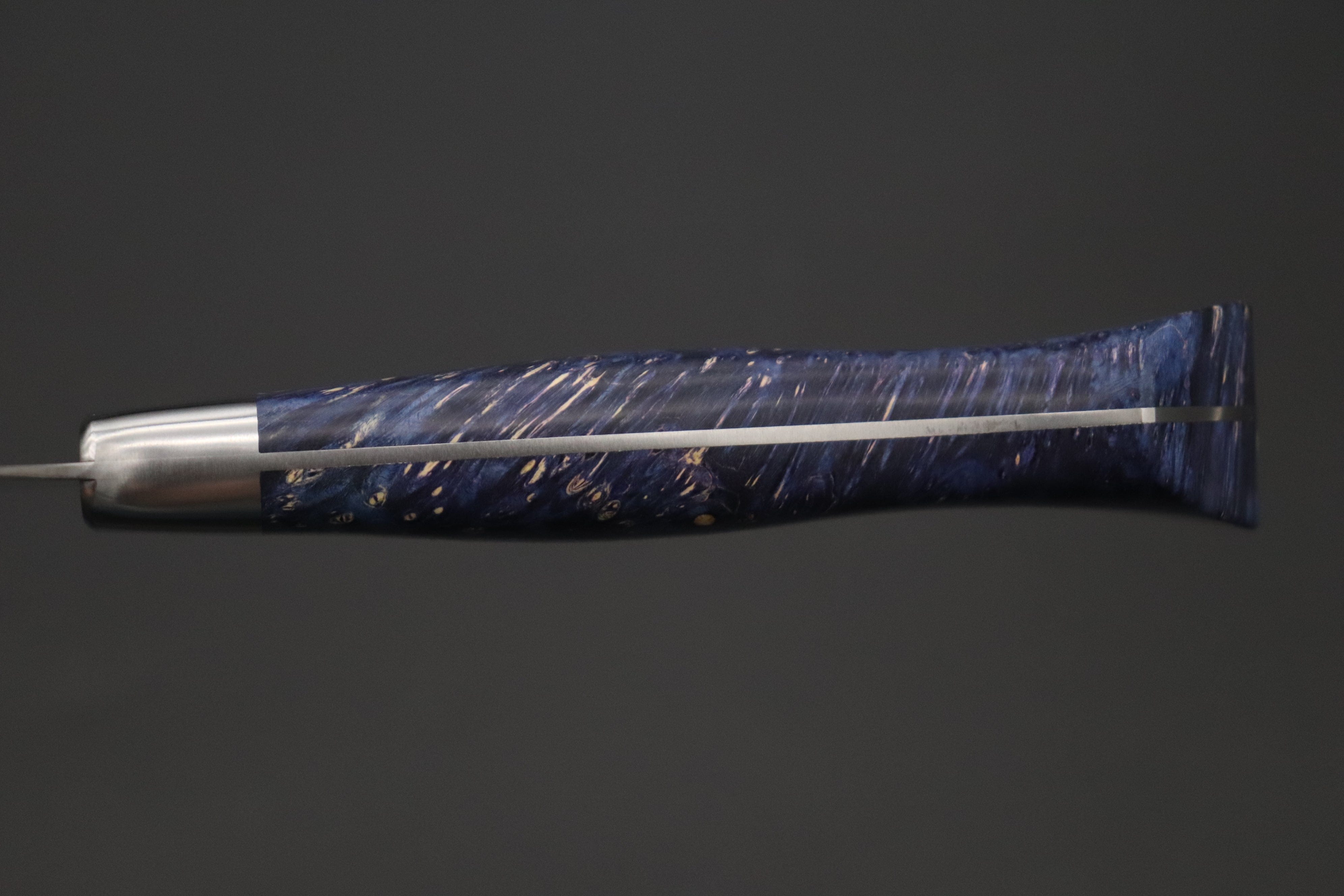 Handle Material: Blue Color Stabilized Box Elder Wood Handle with Stainless Steel Bolster