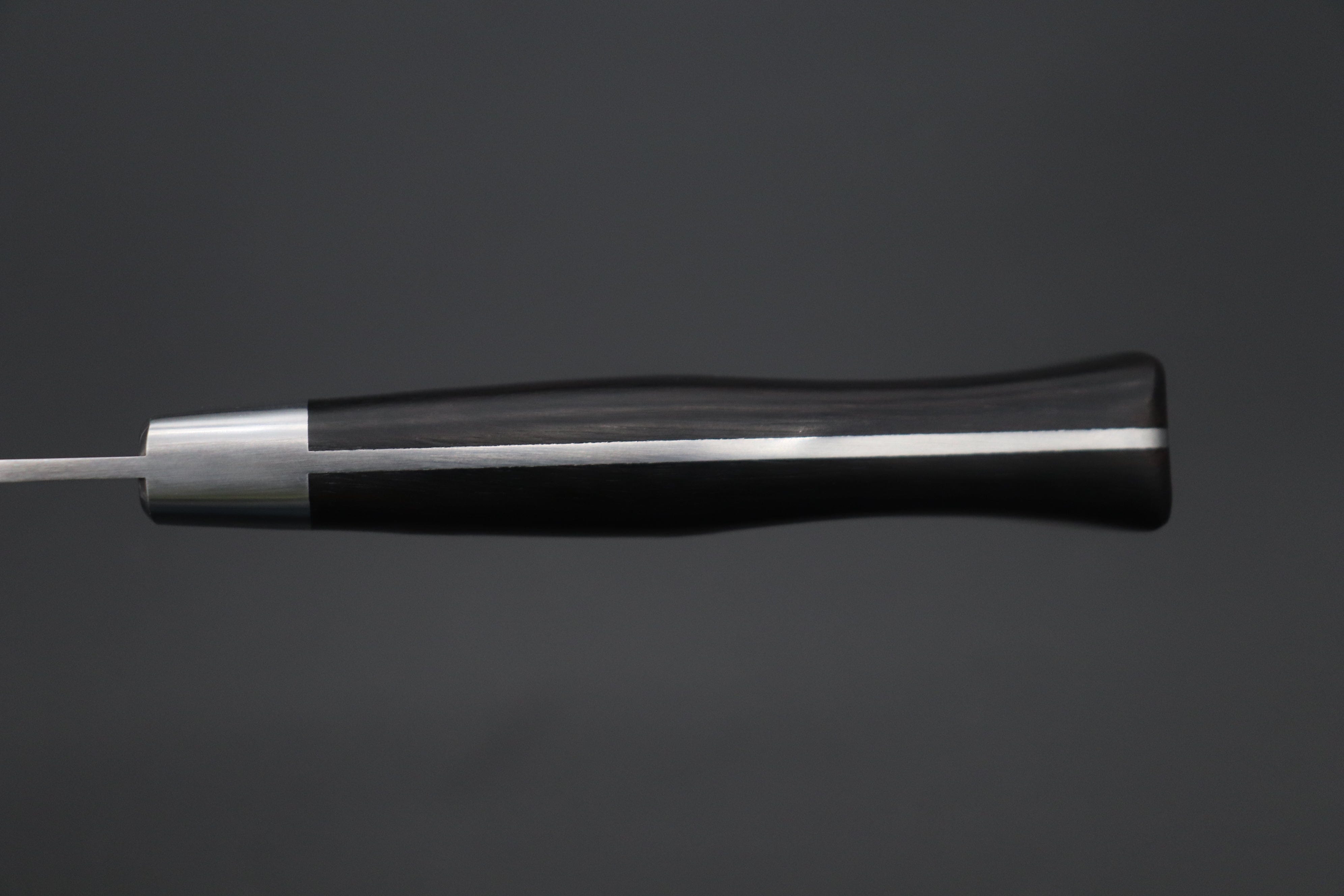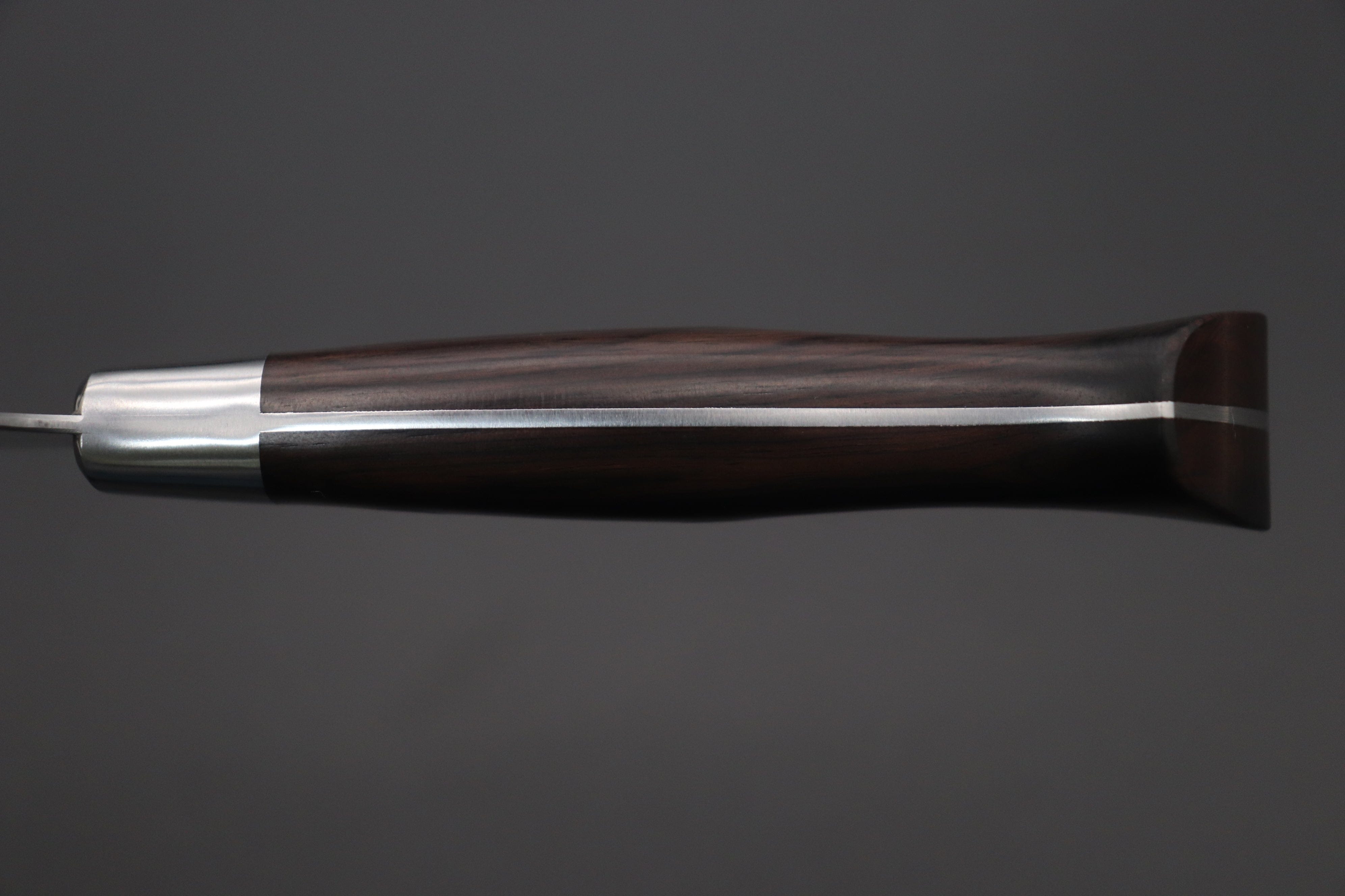 For the handle material, Master Hattori chose the African Black wood which has an elegant look of dark & simple textures. Hattori's fine custom hand working process can be seen on its well hand contoured and perfect shaped handle.