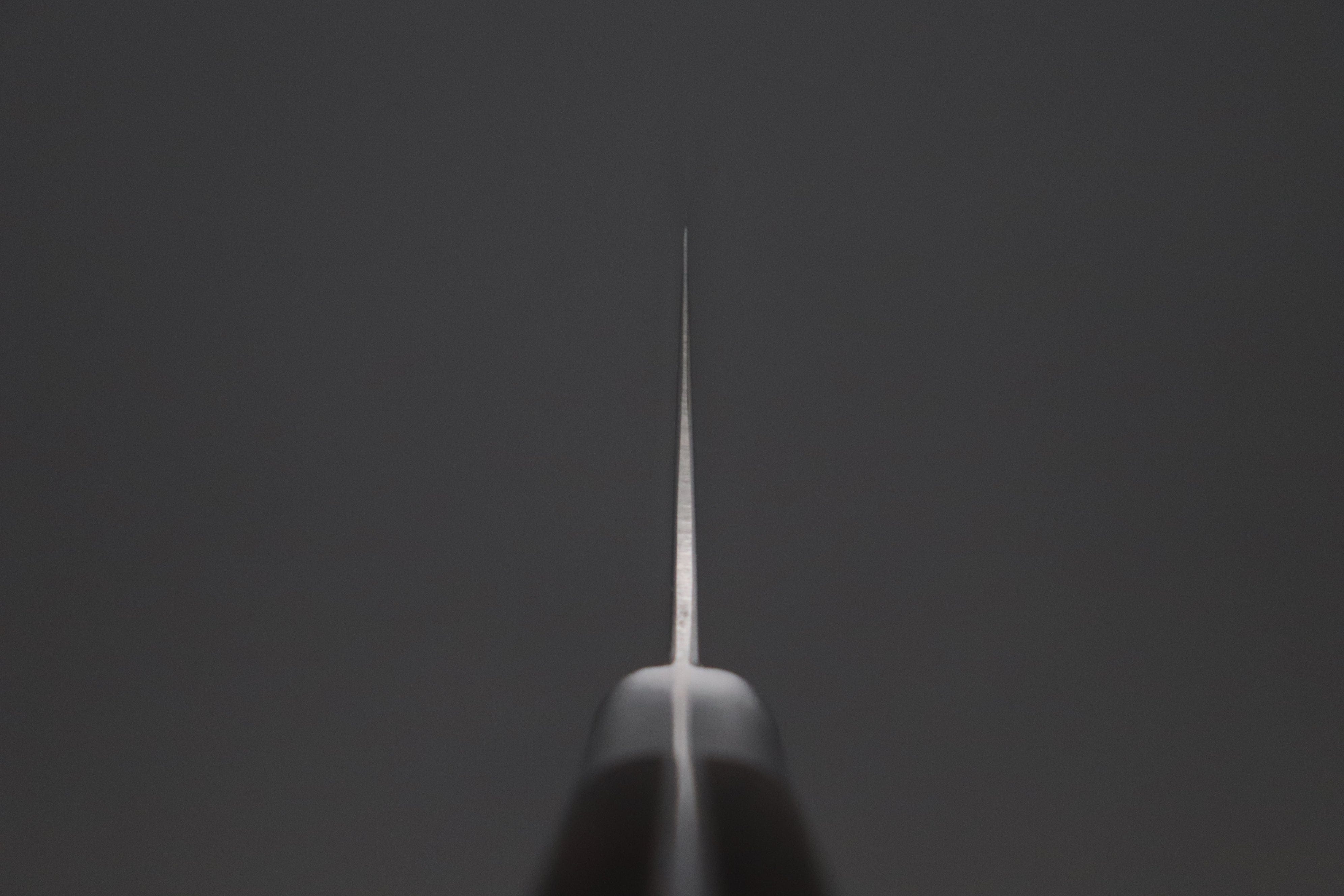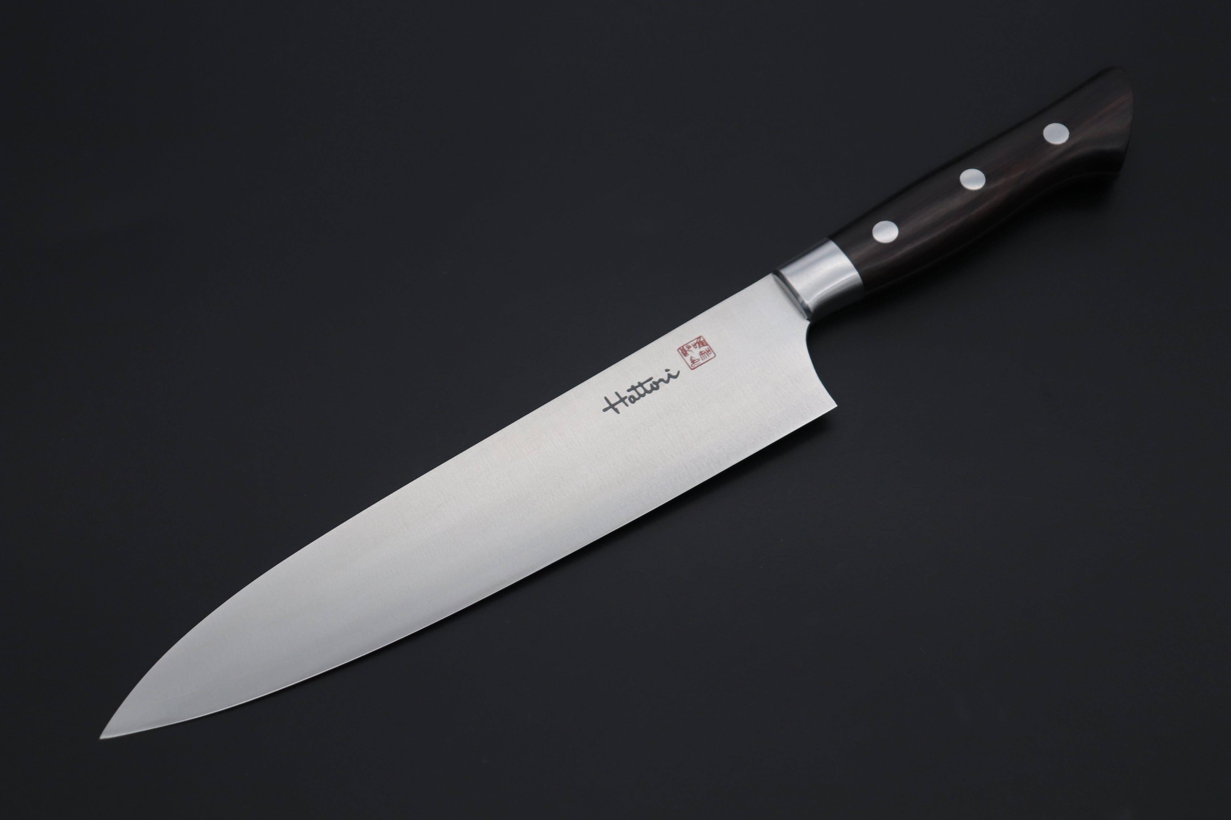 Hattori wanted to proudly show the advantages of the “SAN-MAI” (“3-layer”) blade construction technique and Japan’s most reputable stainless steel, VG-10. The wide exposure of the VG-10 core near the edge gives the blade a distinctive, solid appearance — conveying both strength and refined elegance. We believe our customers will enjoy the exceptional cutting precision and smooth, sturdy feel of these knives, which is quite similar to a mono-steel knife due to the careful selection of tough 420J2 stainless steel cladding.