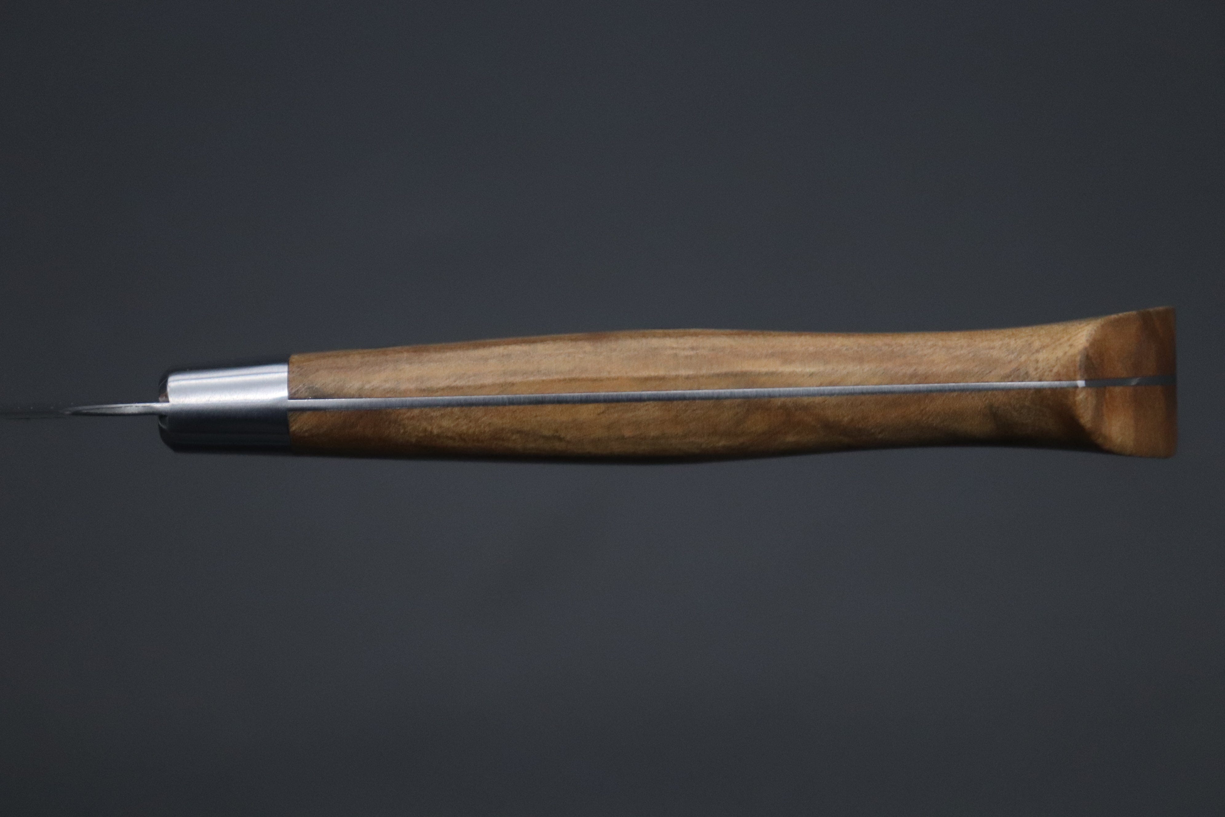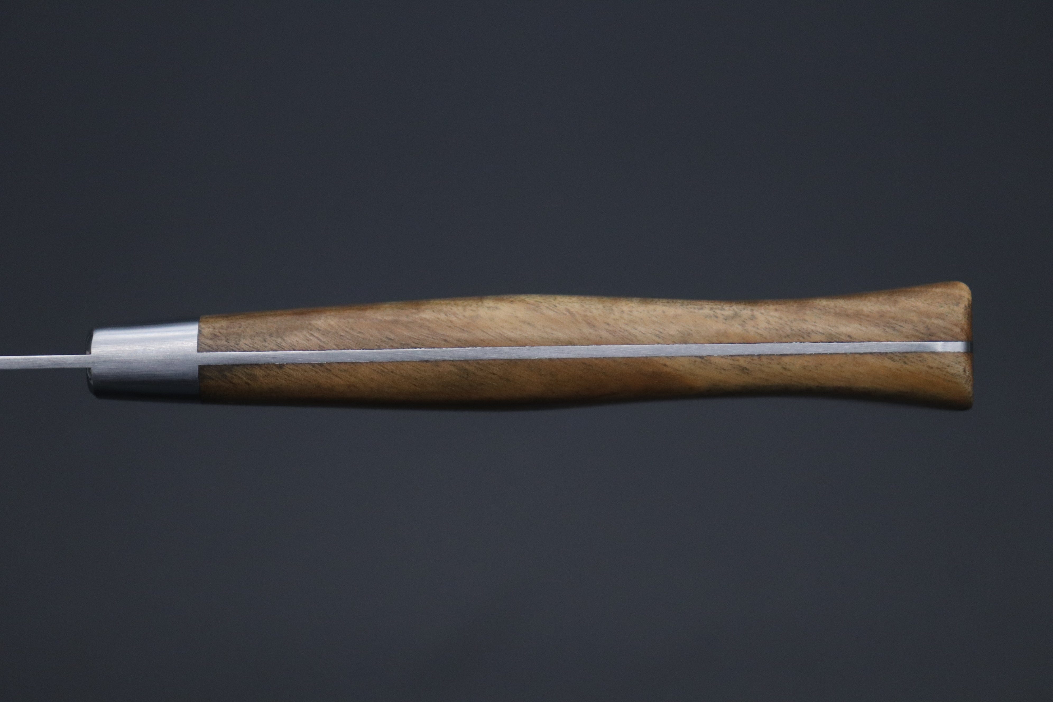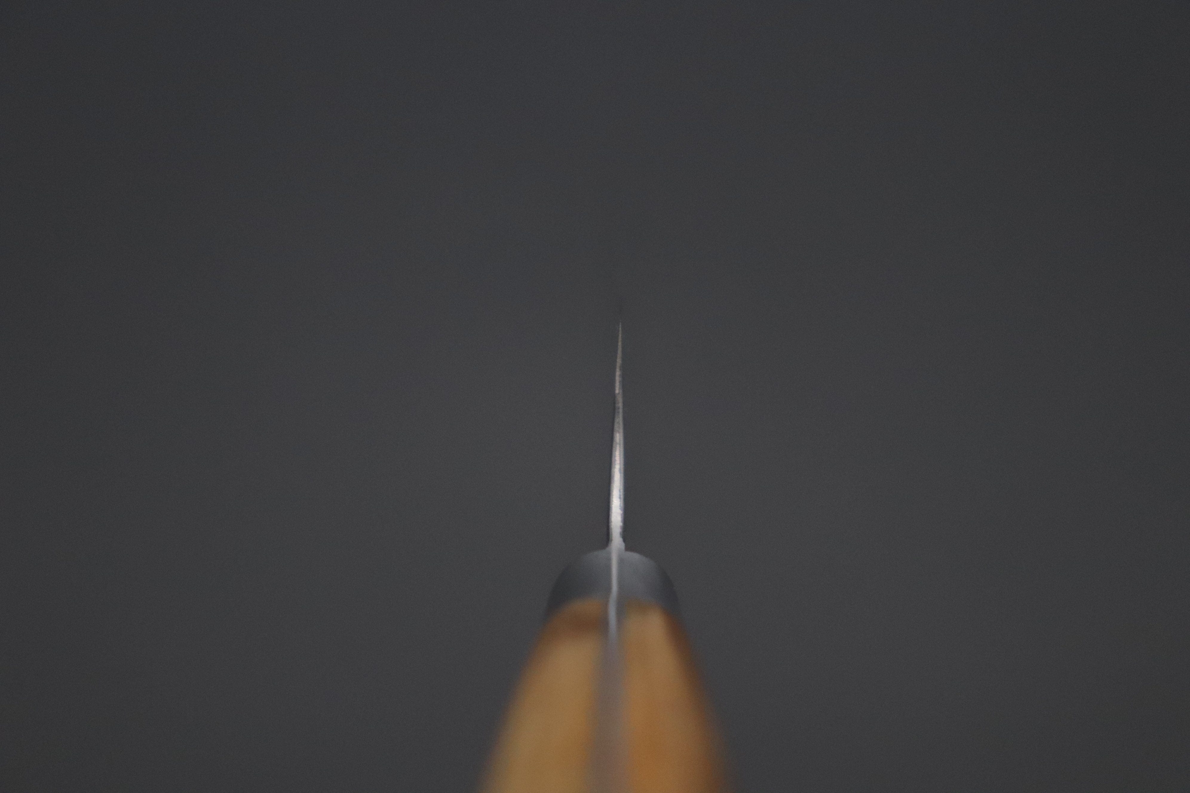 For the handle material, Master Hattori carefully selected some elegant natural Olive Wood, which has a unique and beautiful woodgrain pattern and a warm, rich color. The perfect shape and contours of the handles further showcases Hattori's fine custom handwork. "Natural beauty" and "elegance" are the words that best describe the new Hattori FH Series Gyuto with Olive Wood Handle.