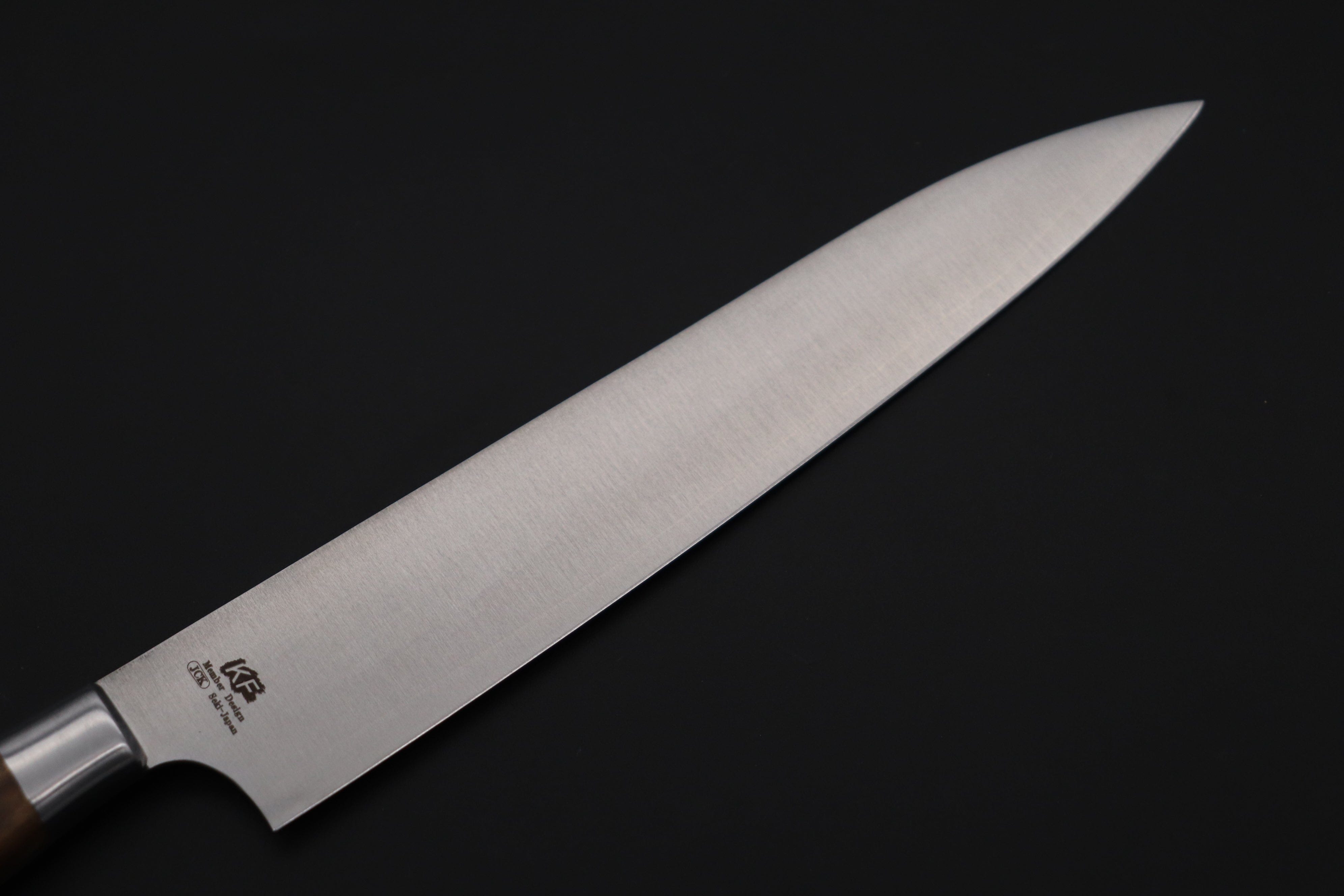 A mainstay of professional Western kitchens, the Petty knife is a small general-purpose knife used for peeling, shaping, and slicing fruits and vegetables, chopping herbs, and making garnishes. The compact size and relatively narrow blade of the Petty knife mean that it is very nimble and controllable, thus it is ideal for making precise cuts.