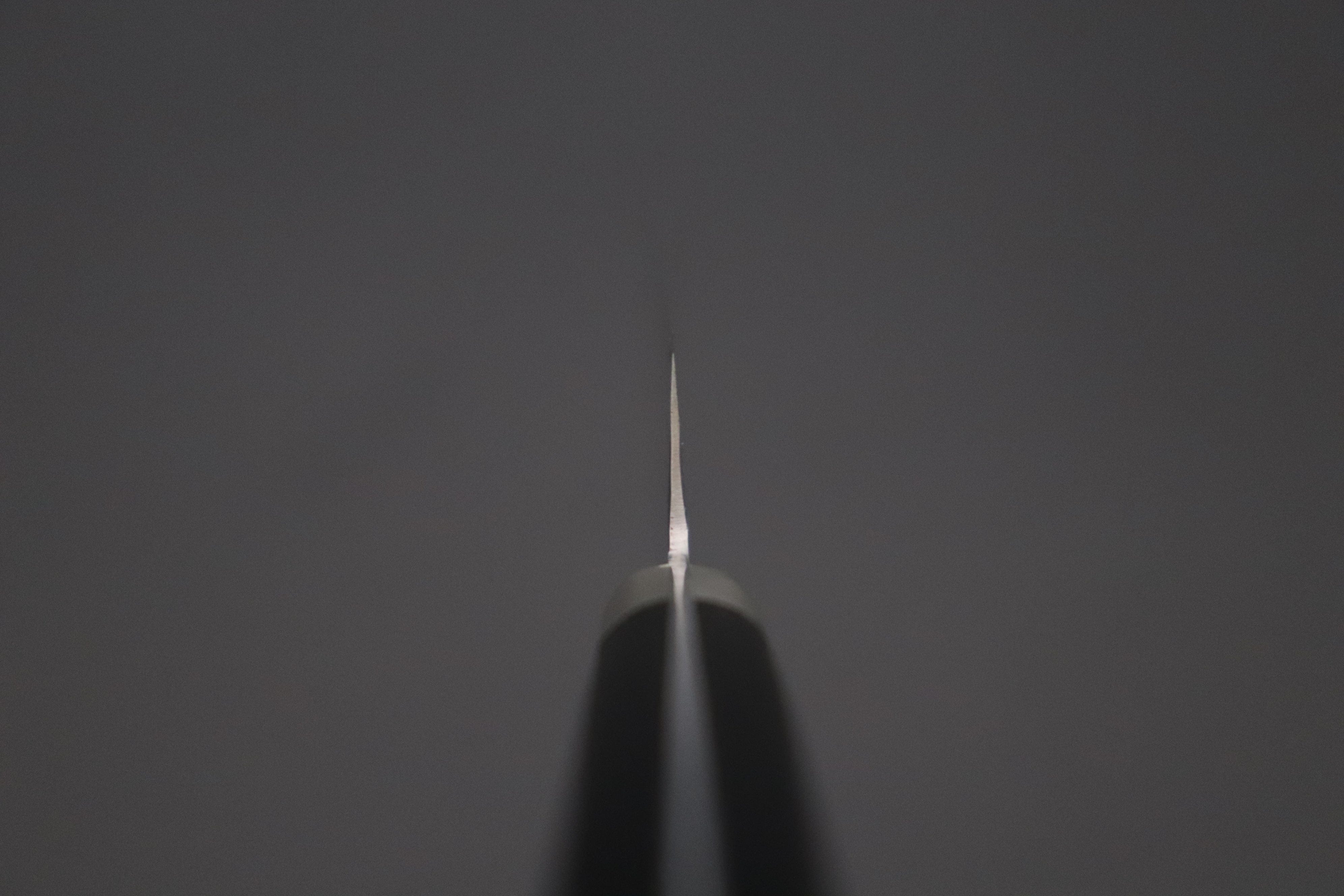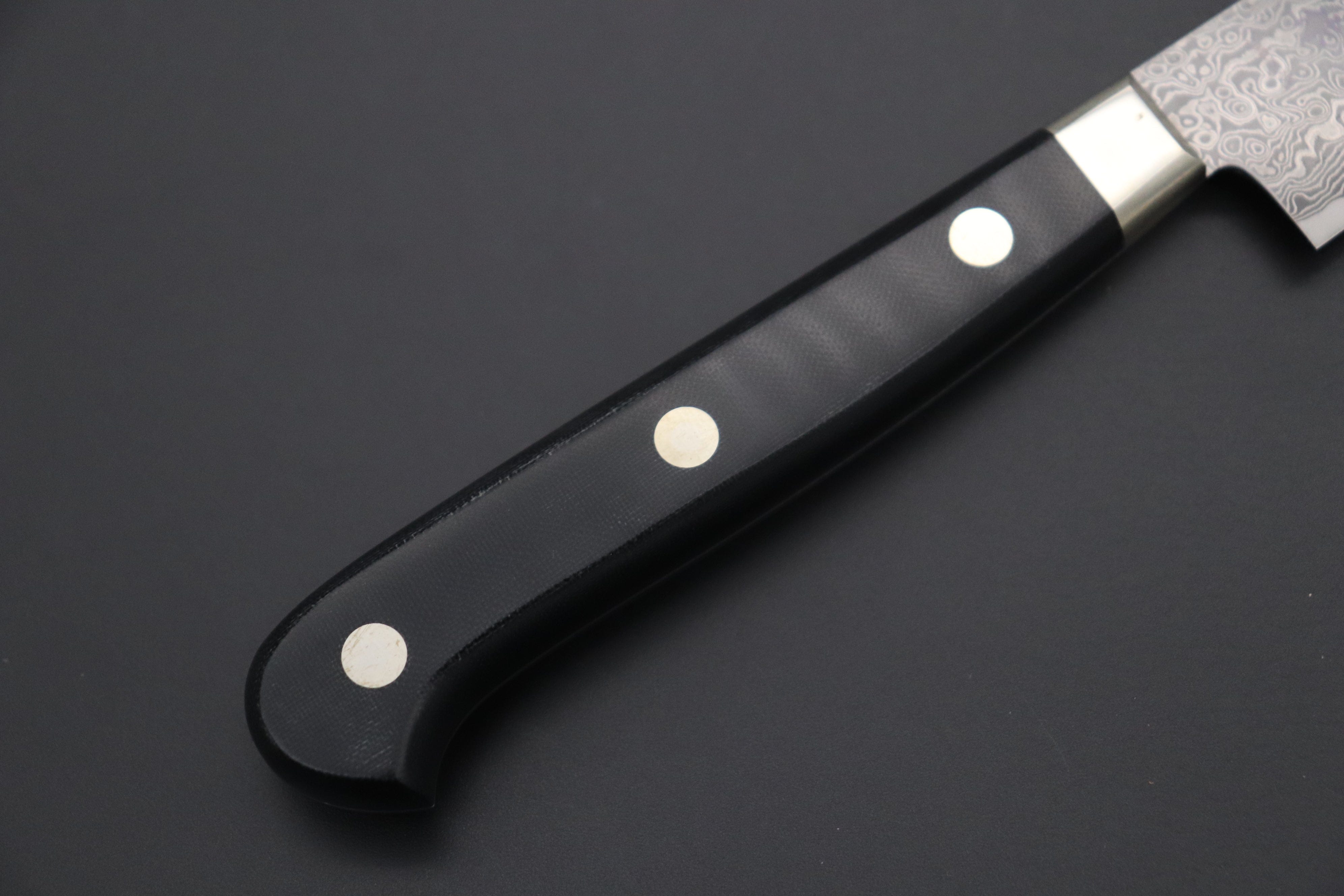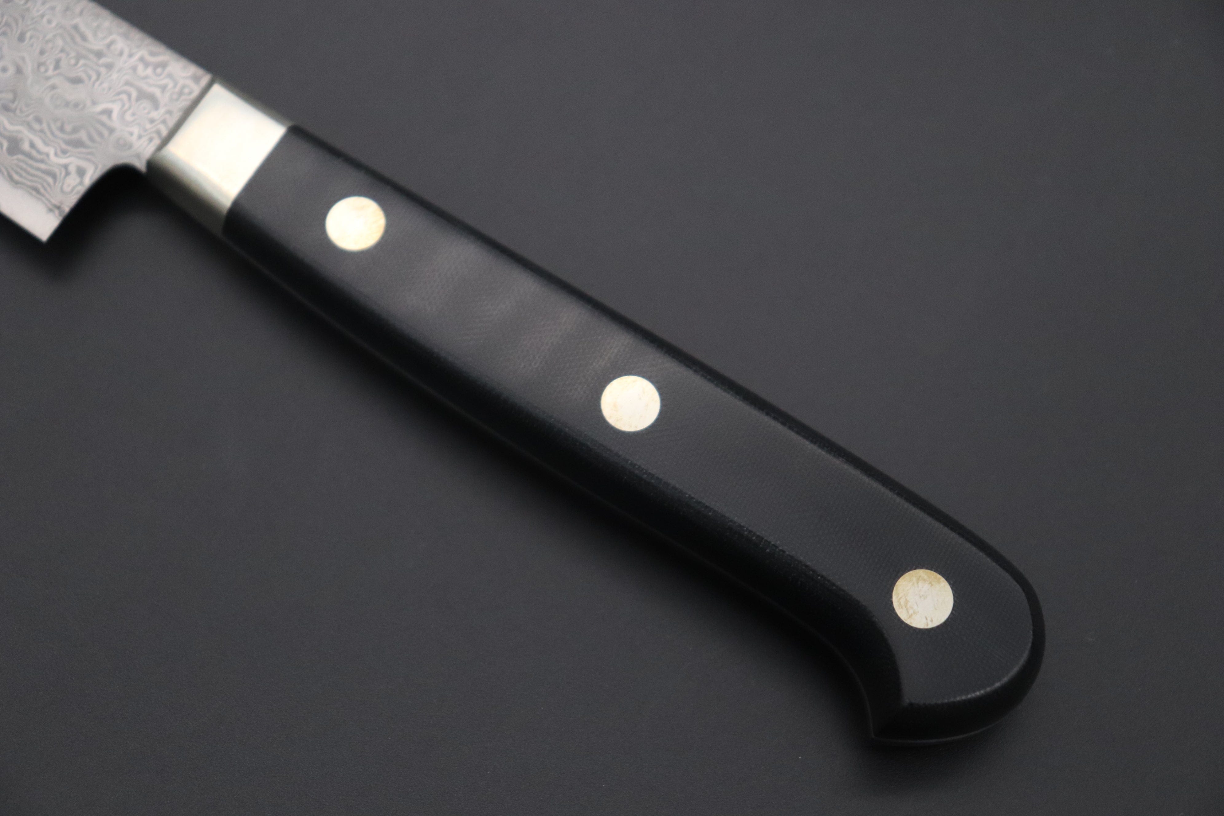 The sturdy black linen Micarta handle fits your hand perfectly, is resistant to water and shrinkage, and is enhanced with a nickel silver bolster and rivets. Each knife comes in a traditional Kiri (Paulownia) wood presentation gift box.