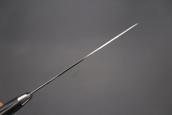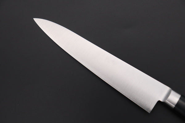 A mainstay of professional Western kitchens, the Petty knife is a small general-purpose knife used for peeling, shaping, and slicing fruits and vegetables, chopping herbs, and making garnishes. The compact size and relatively narrow blade of the Petty knife mean that it is very nimble and controllable, thus it is ideal for making precise cuts.