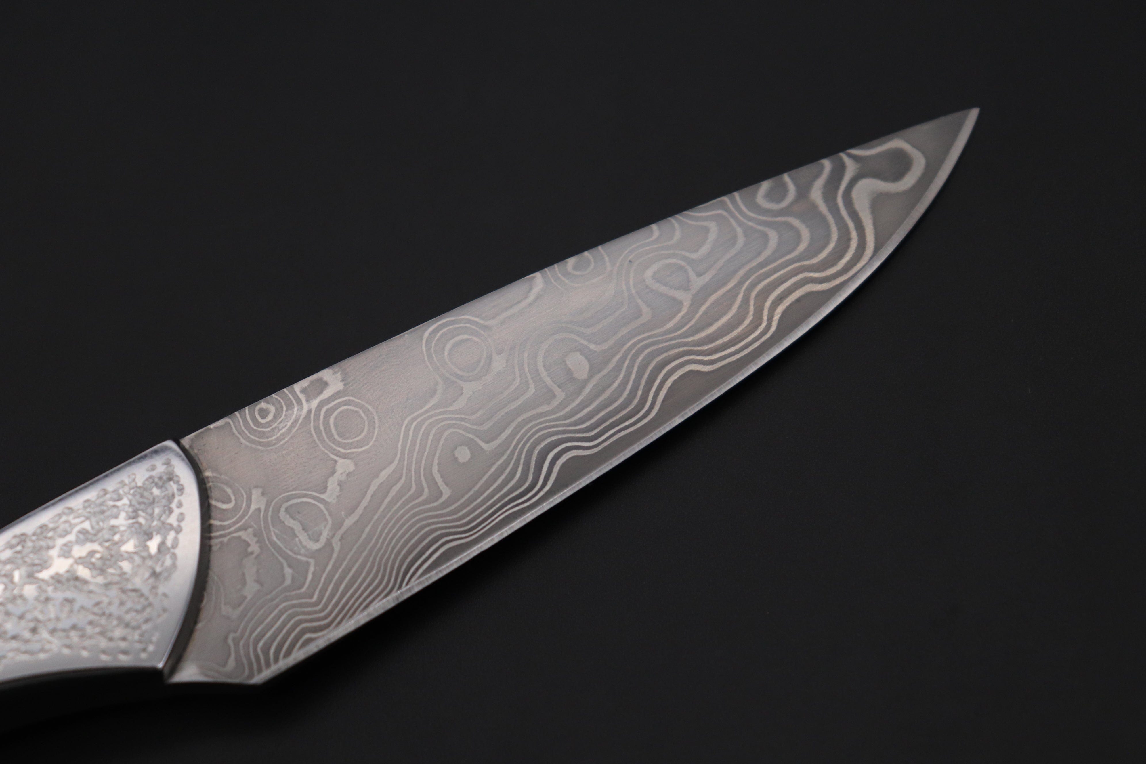 Knife Model: Koji Hara KH-530 Koji's Hammer Forged Damascus Custom Utility Steak Knife "Elegant Stubby"