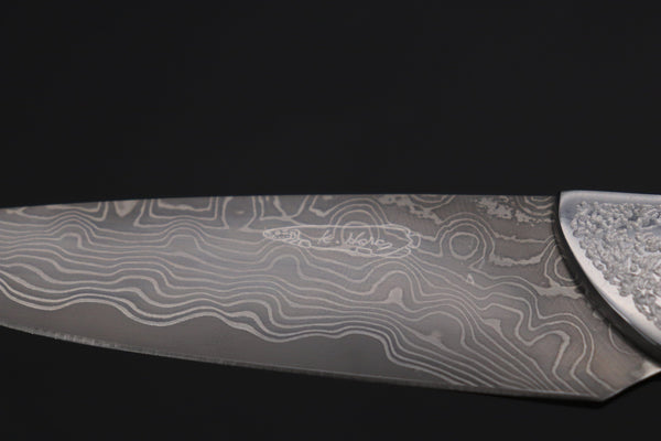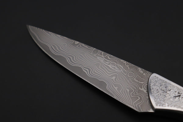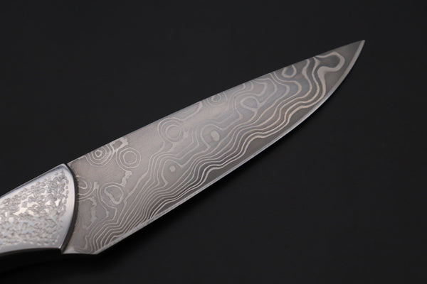 Koji Hara KH-530 Koji's Hammer Forged Damascus Custom Utility Steak Knife "Elegant Stubby"