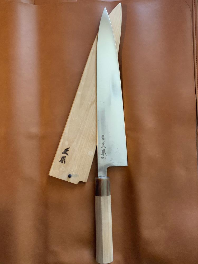 | Wa Gyuto 270mm (10.6") Cutting edge length: 285mm Total Length: 440mm Blade Thickness: 3mm Blade Width: 53mm Handle Length: 142mm Total Weight: 206g |