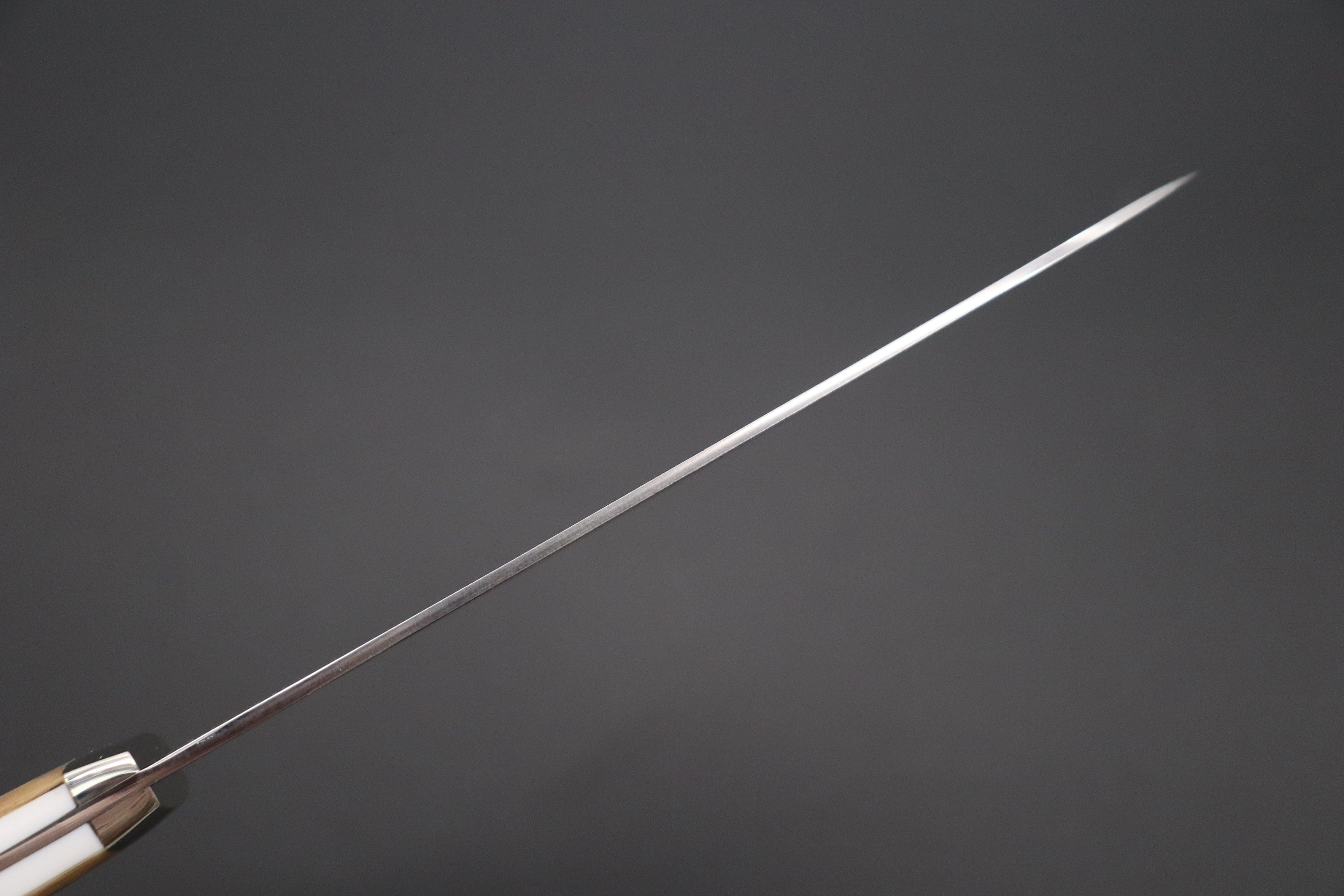 This knife comes with beautiful and good strength, Mr. Itou and Mr. Nagata's Original White Abalone Handle.