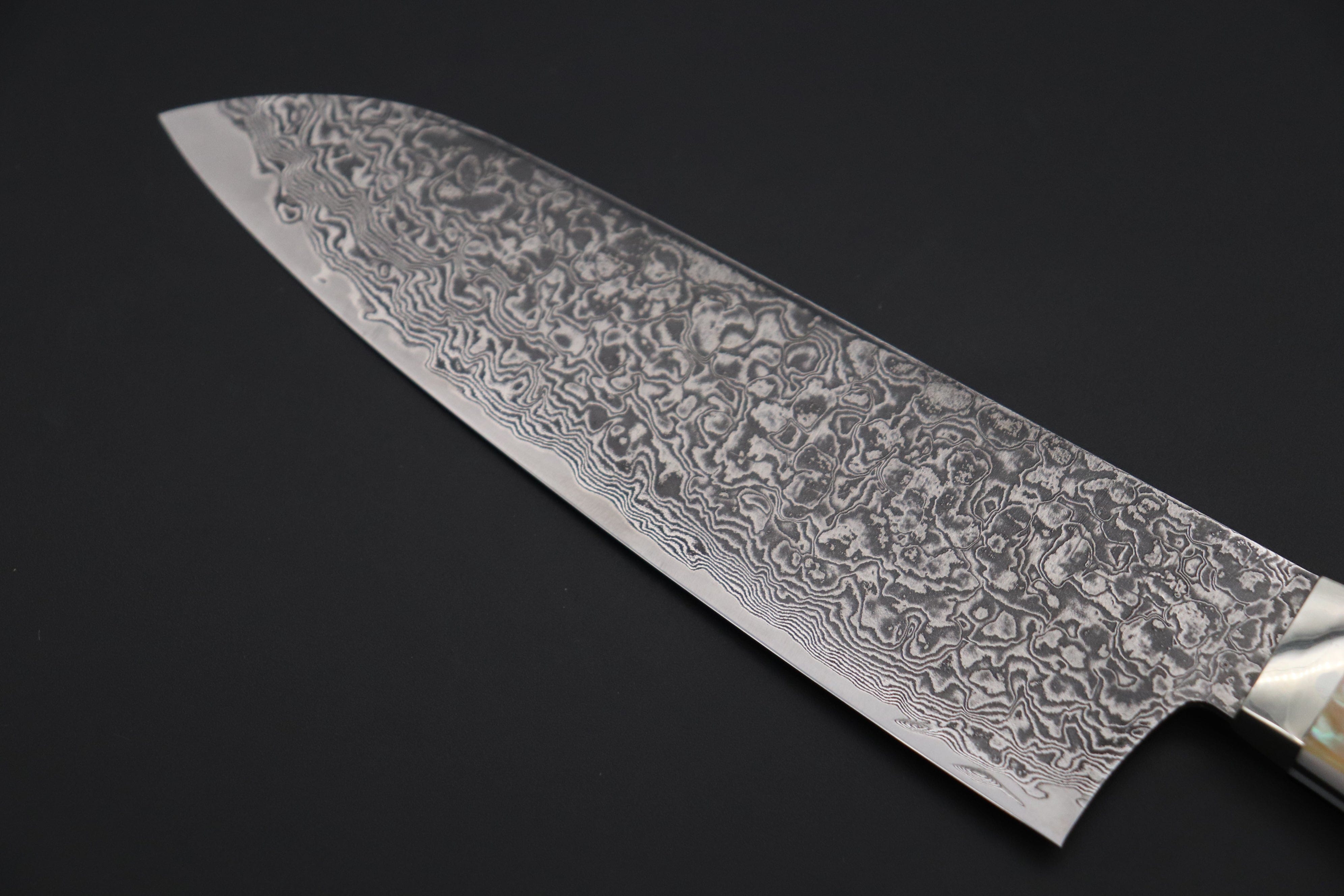 Each blade is hammer forged with using R-2 Powdered High Speed Tool Steel (HRc 62), creating the beautiful and powerful appearance Damascus knives. As seen on other high-end full tang custom knives, Mr. Nagata hand tapers the blade tang in order to reduce weight and to perfectly balance the blade and handle. He contours and polishes the handle to ensure a perfect grip and an attractive finish.