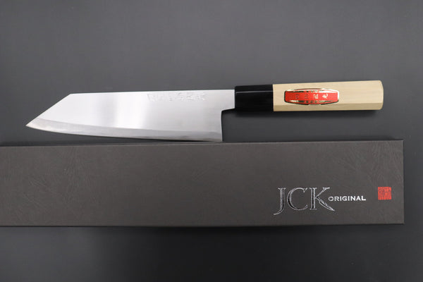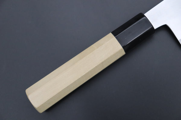 This Bunka Knife comes with a classic Octagonal Japanese Magnolia Wood Wa Handle, which has a Water Buffalo Horn Ferrule.