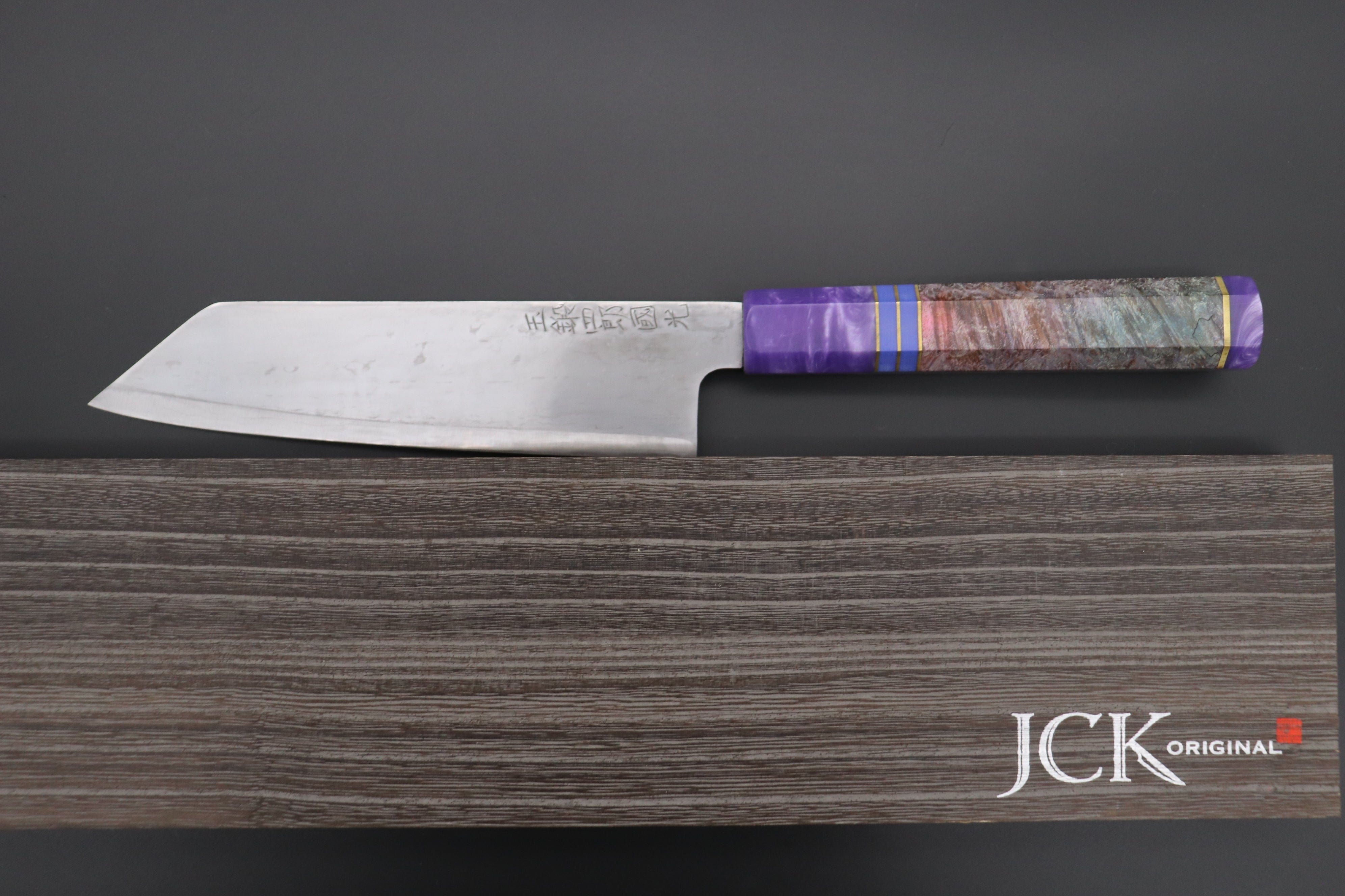 This Custom Limited Edition SHIROU-KUNIMITSU TAMAHAGANE Bunka 190mm knife was produced in collaboration with a Custom Handle Maker, who makes beautiful "one-of-a-kind" handles.