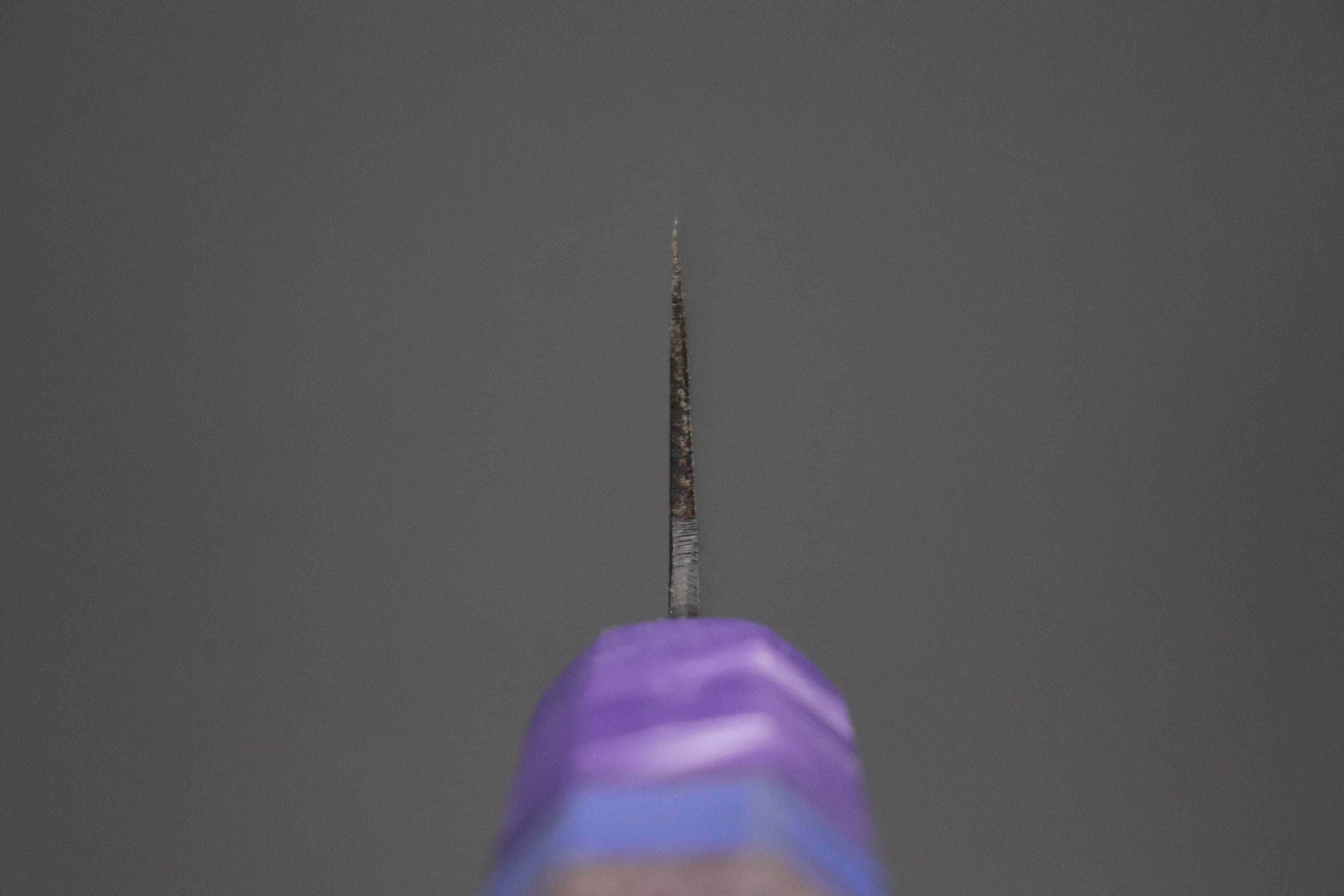 One of our knife experts, who has used and owned Tamahagane knives, stated although Tamahagane steel knives has several demerits —Such as being very prone to discoloration and rust, and not reaching the same Rockwell hardness as popular Japanese carbon steels (e.g. White Steel No.2, Blue steel No.2 and Aogami Super)— he personally felt Tamahagane knives have their own unique appealing warmth and spirit, and their own ‘mysterious’ cutting power. Even though our knife expert is very experienced, he was still very excited to spend time with the Tamahagane steel knives and sharpen them.