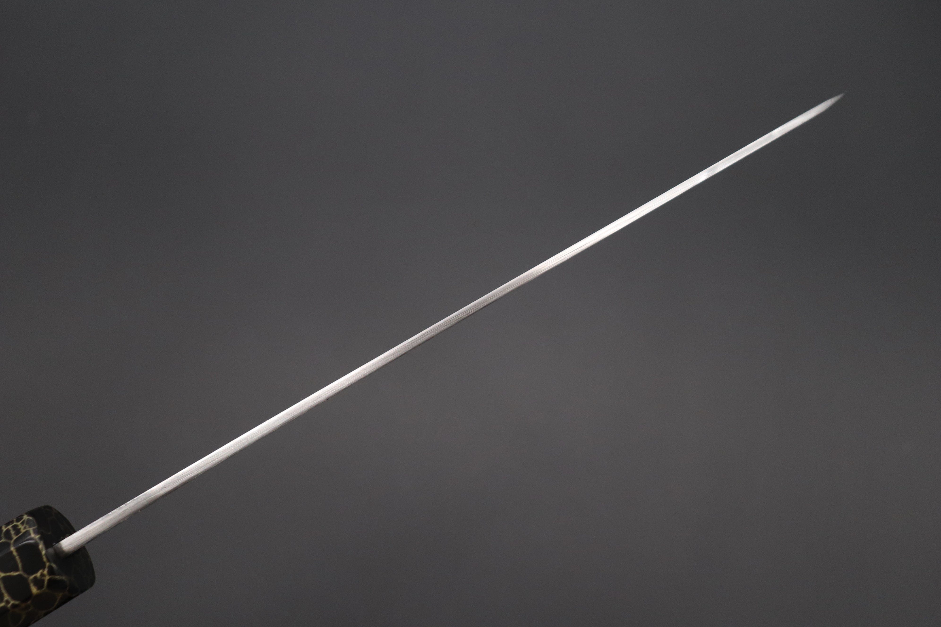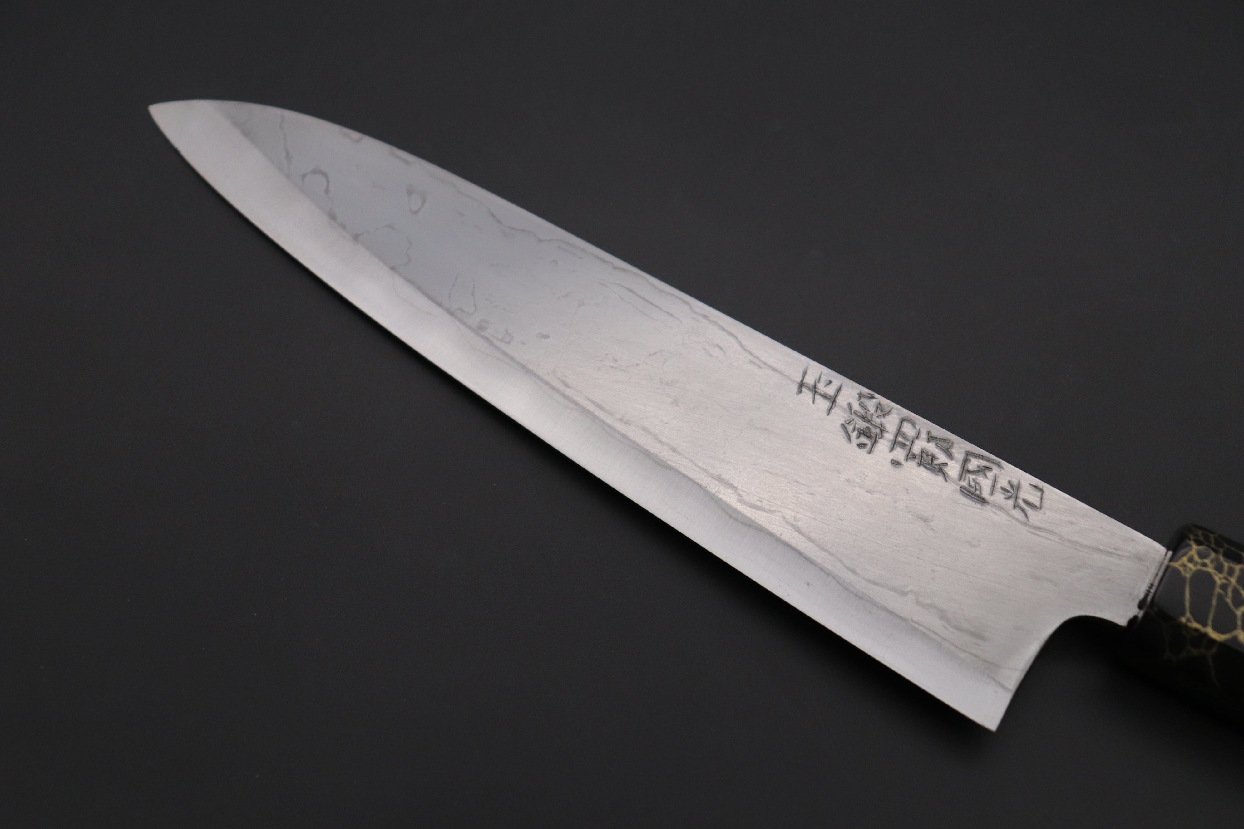 This Custom Limited Edition SHIROU-KUNIMITSU TAMAHAGANE Wa-Gyuto 210mm knife was produced in collaboration with a Custom Handle Maker, who makes beautiful "one-of-a-kind" handles.