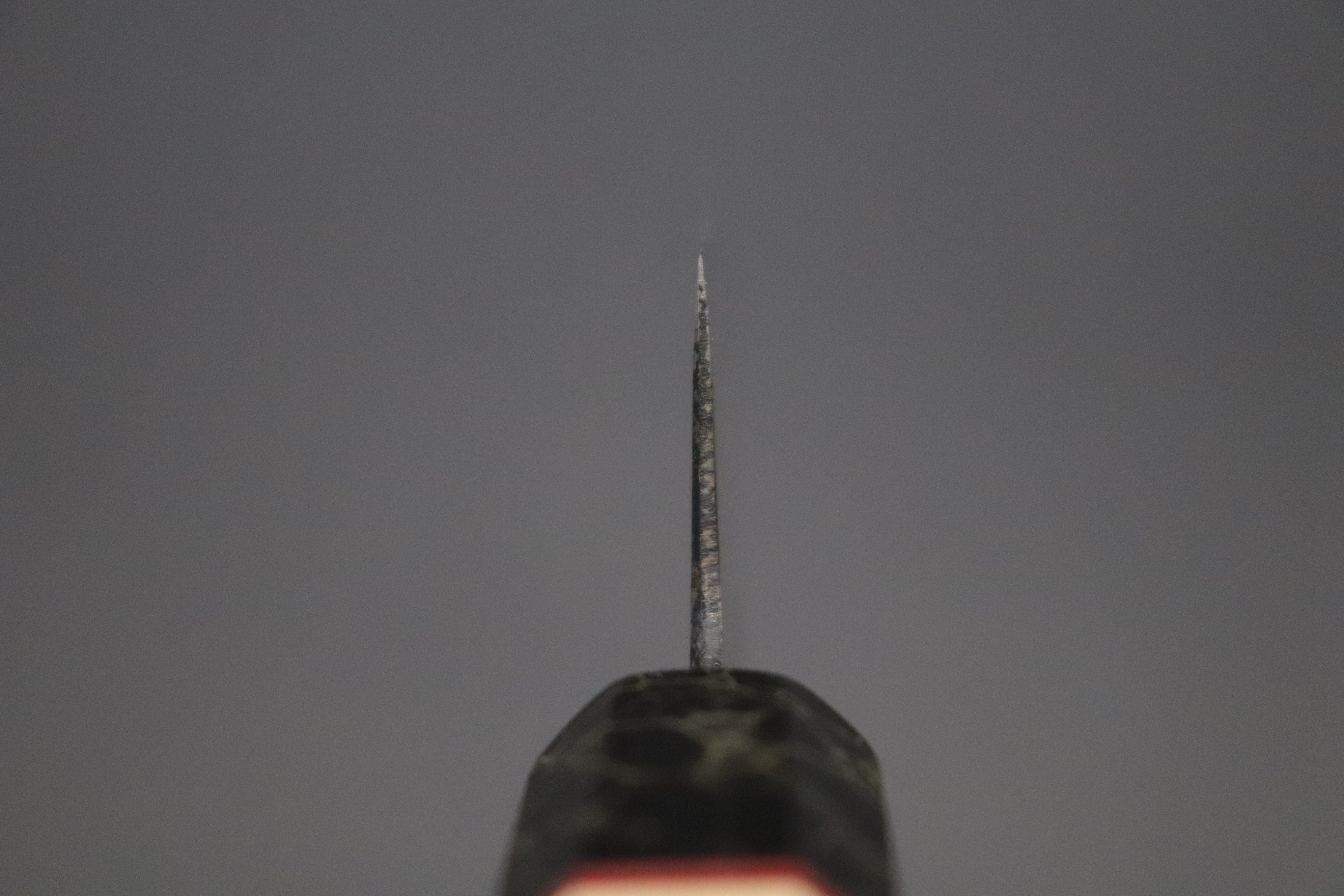 One of our knife experts, who has used and owned Tamahagane knives, stated although Tamahagane steel knives has several demerits —Such as being very prone to discoloration and rust, and not reaching the same Rockwell hardness as popular Japanese carbon steels (e.g. White Steel No.2, Blue steel No.2 and Aogami Super)— he personally felt Tamahagane knives have their own unique appealing warmth and spirit, and their own ‘mysterious’ cutting power. Even though our knife expert is very experienced, he was still very excited to spend time with the Tamahagane steel knives and sharpen them.