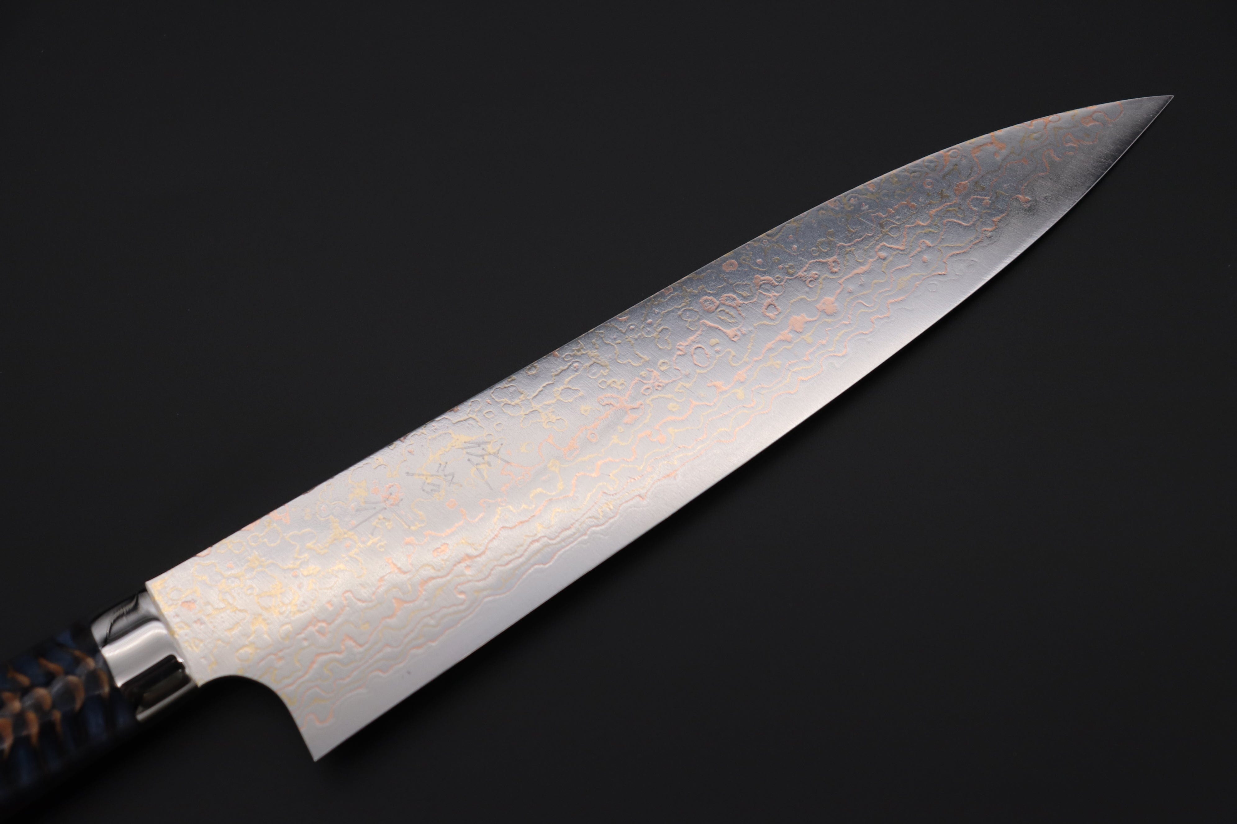 Takeshi Saji SUMMIT ― Limited Edition Custom Series SMT-1000磨 VG-10W Multi-Colored Golden-Rainbow Damascus Gyuto 210mm (8.2 Inch)