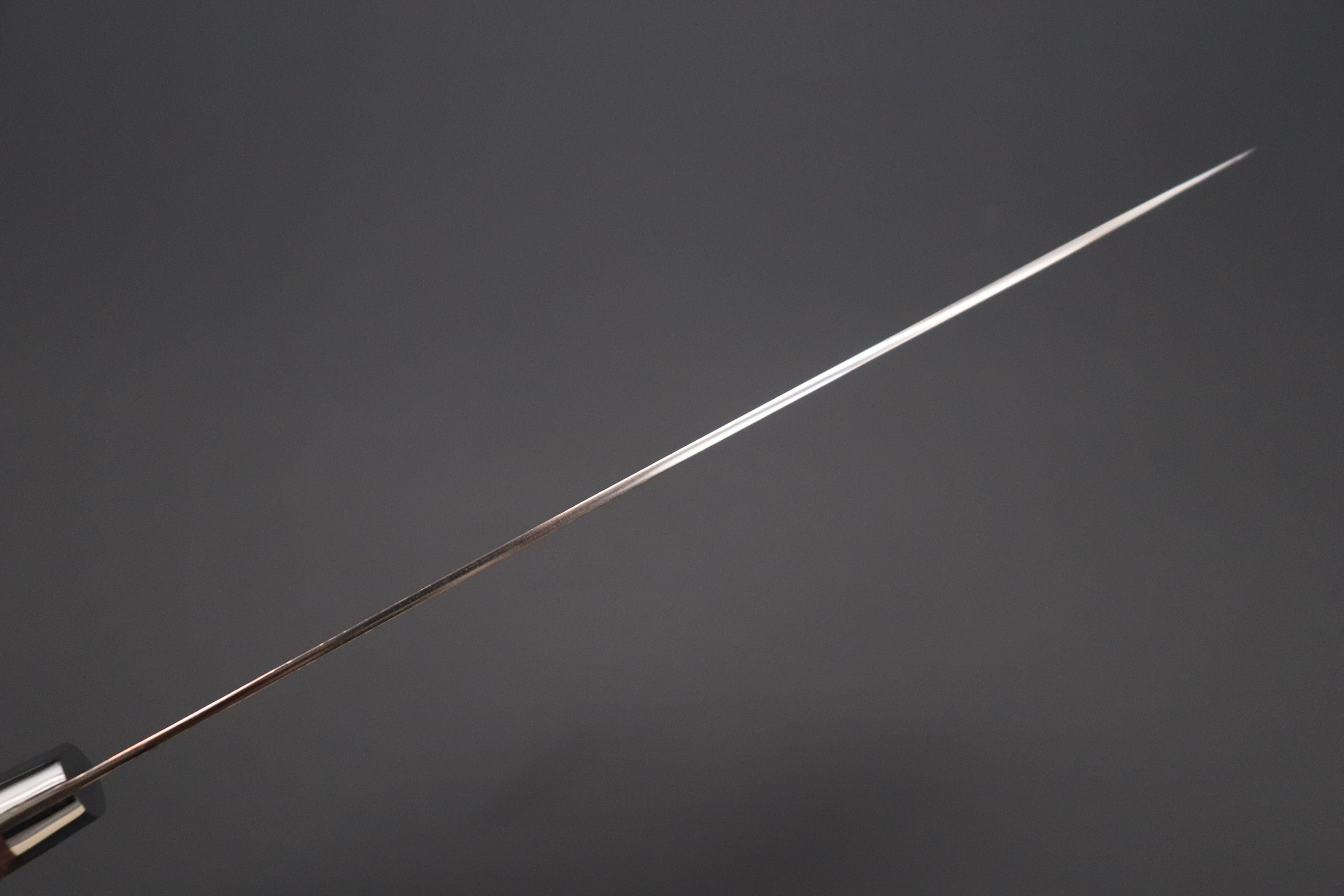 The Gyuto is the Japanese version of the classic Western Chef’s knife. It can be used with a variety of different cutting techniques to achieve a wide range of kitchen tasks and is suitable for cutting the vast majority of meats, fish, vegetables and fruits. The Gyuto is true multi-purpose knife.