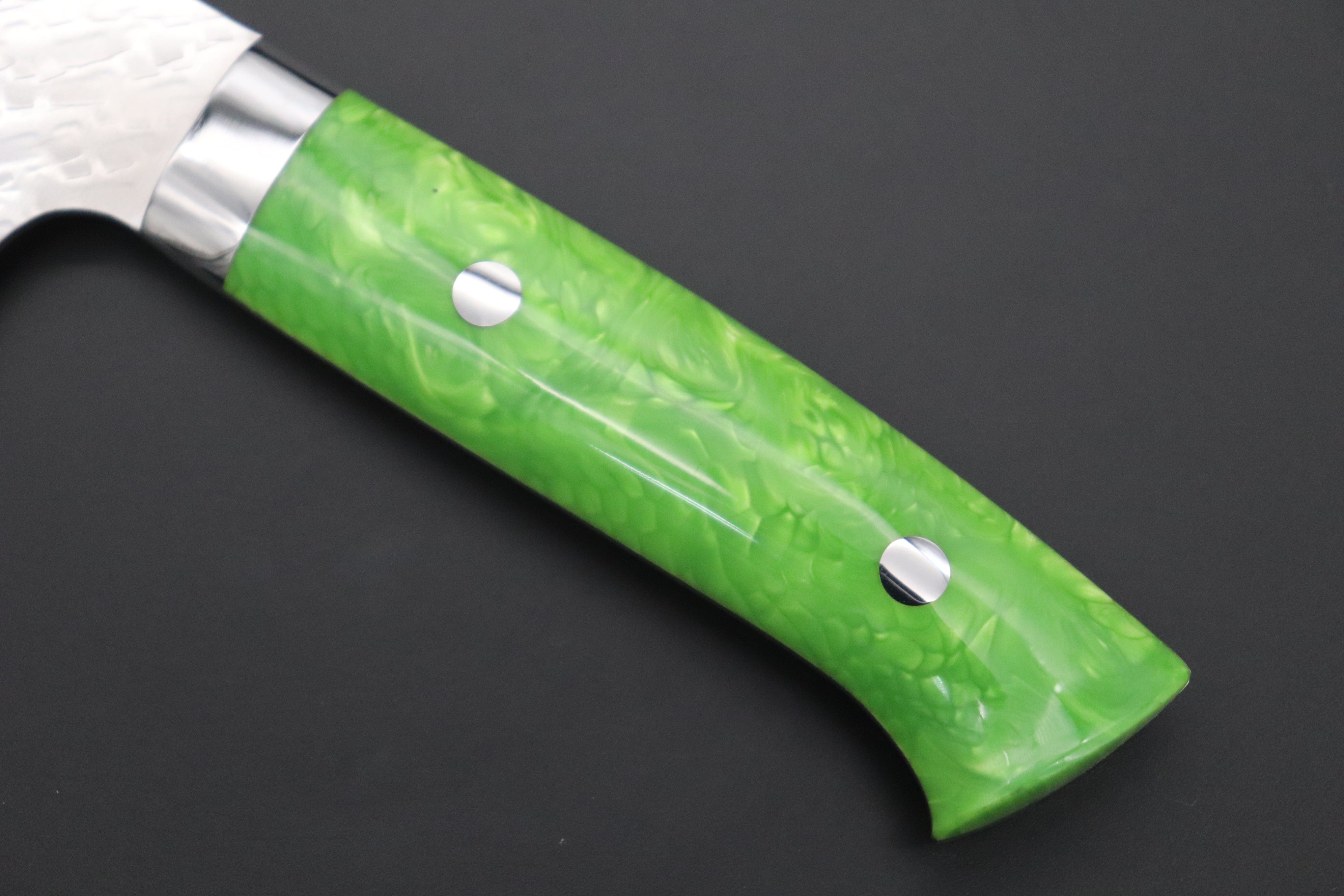 One day at the US Knife Show, we accidentaly met with this rare and stylish, "JUMA Emerald Green Color Material. JUMA is a high grade, modern raw material for handcrafted works of art. JUMA is a resin based material has great durability and makes very beautiful & attractive appearance (like the Dragon's Scale) We promptly requested Master Saji to use this special material for his very limited edition knife and now another masterpiece of Saji SUMMIT- Limited Edition Custom Series knife is available.