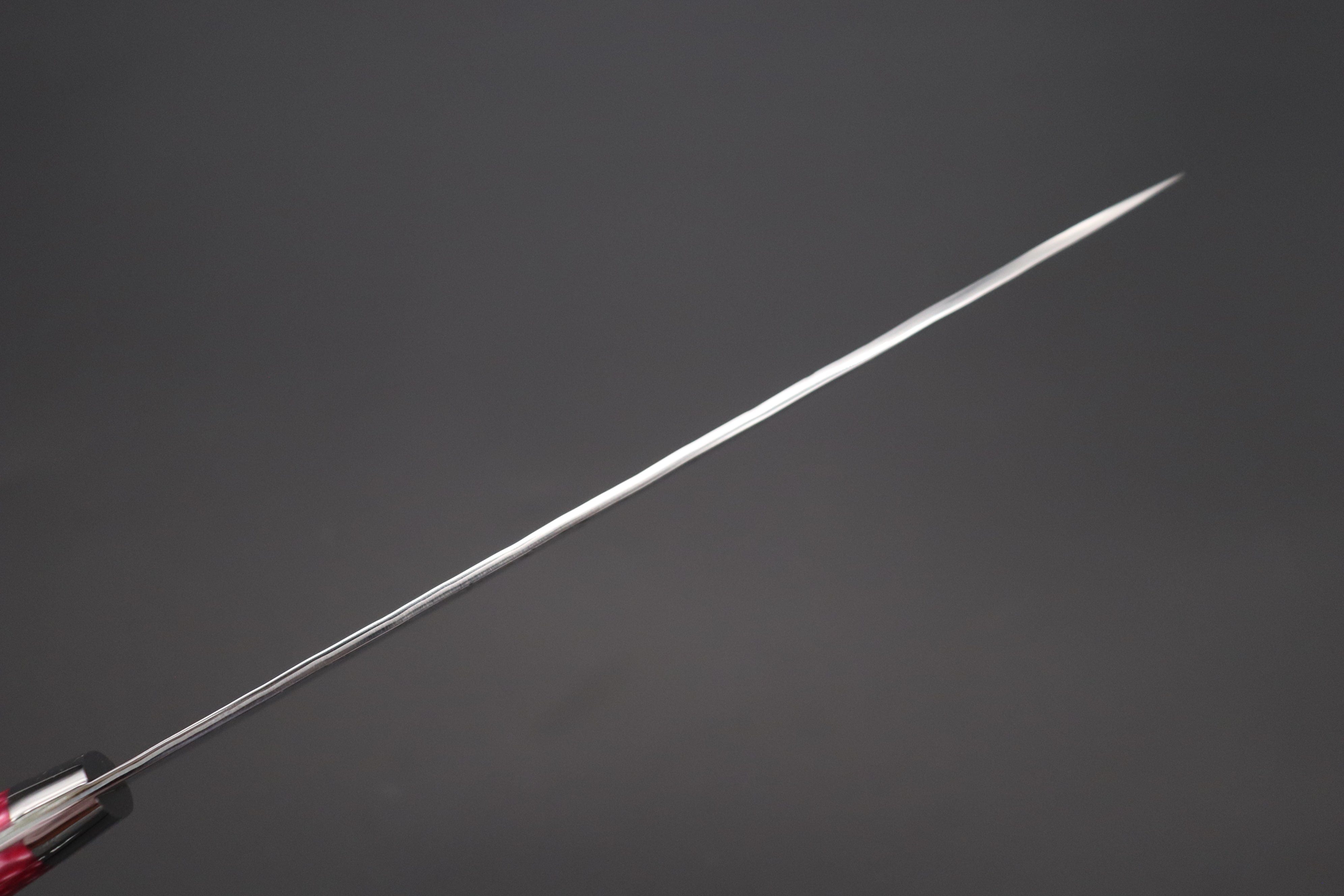 The Gyuto is the Japanese version of the classic Western Chef’s knife. It can be used with a variety of different cutting techniques to achieve a wide range of kitchen tasks and is suitable for cutting the vast majority of meats, fish, vegetables and fruits. The Gyuto is true multi-purpose knife.