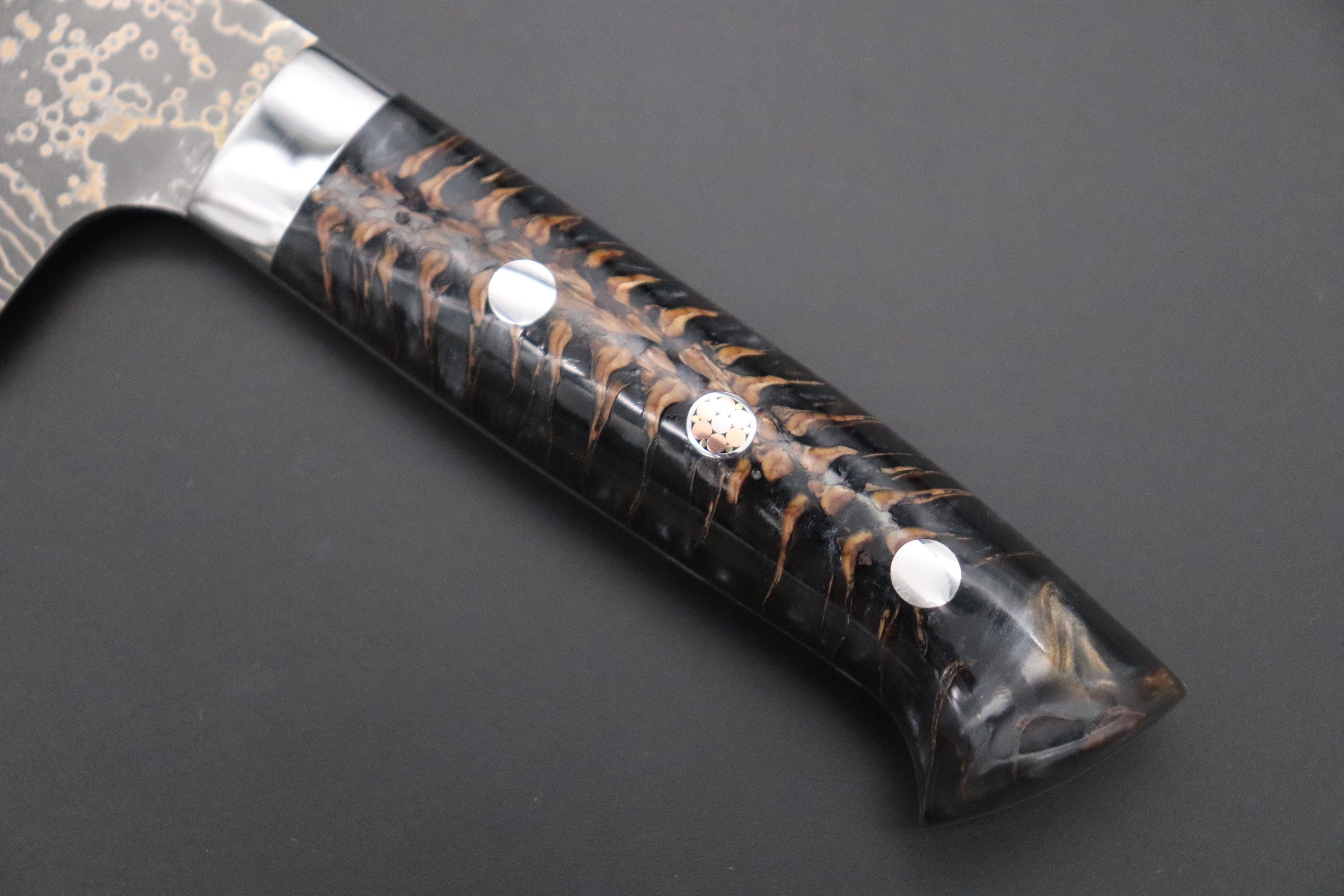 Blade Material: VG-10W Multi-Colored Golden-Rainbow Damascus