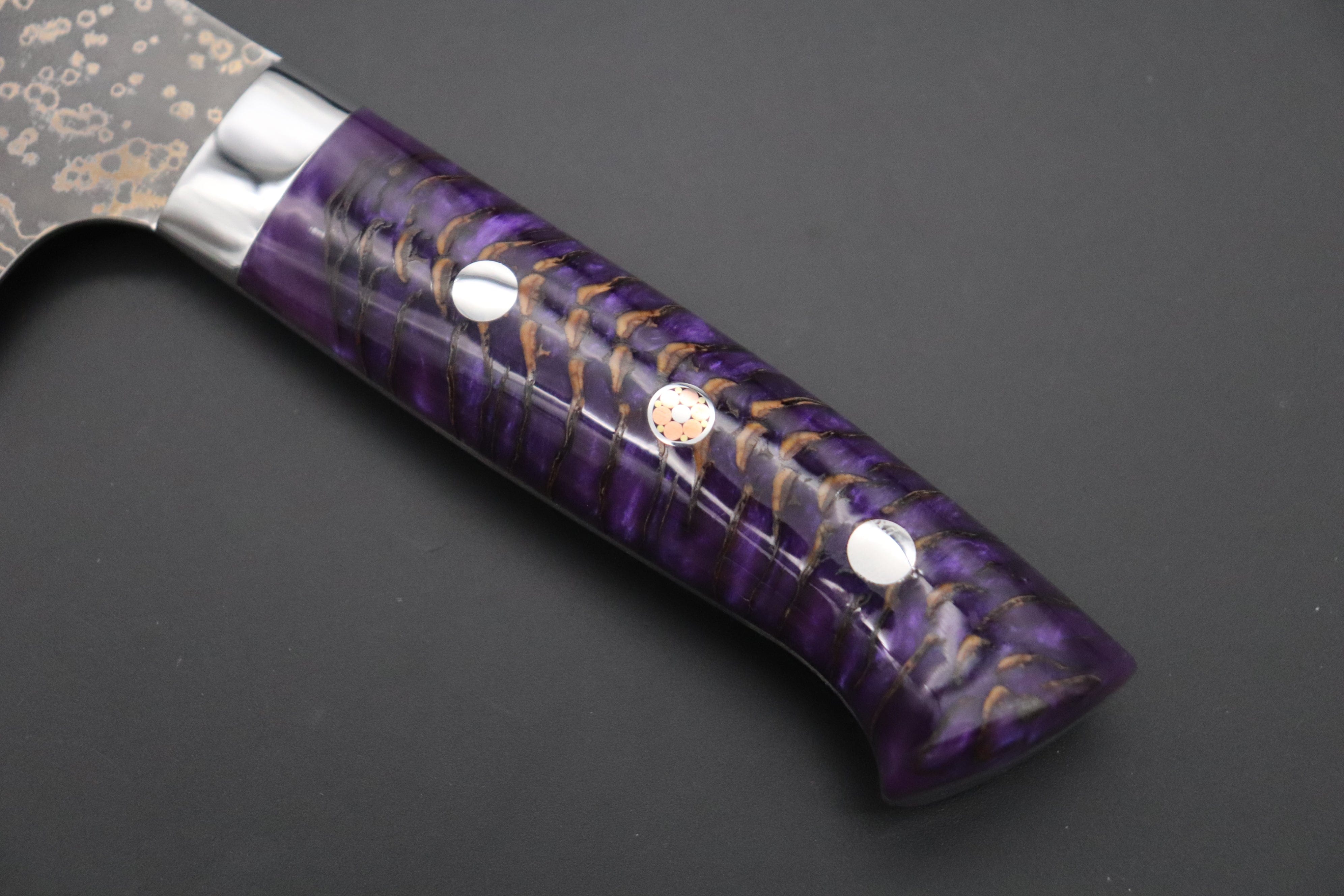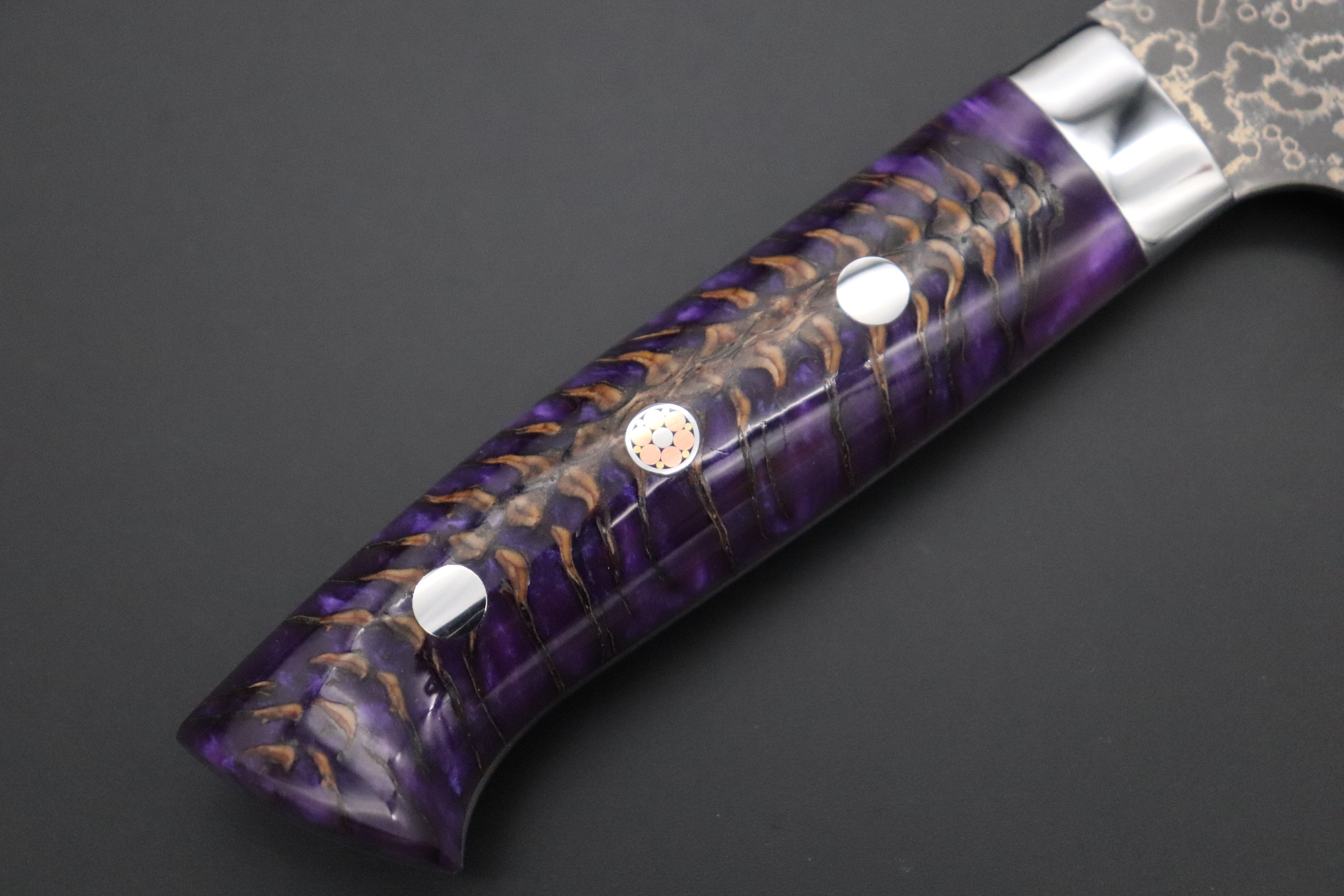 Handle Material: Royal Purple Color Stabilized Spruce Cones Hybrid Wood Handle with Stainless Steel Bolster