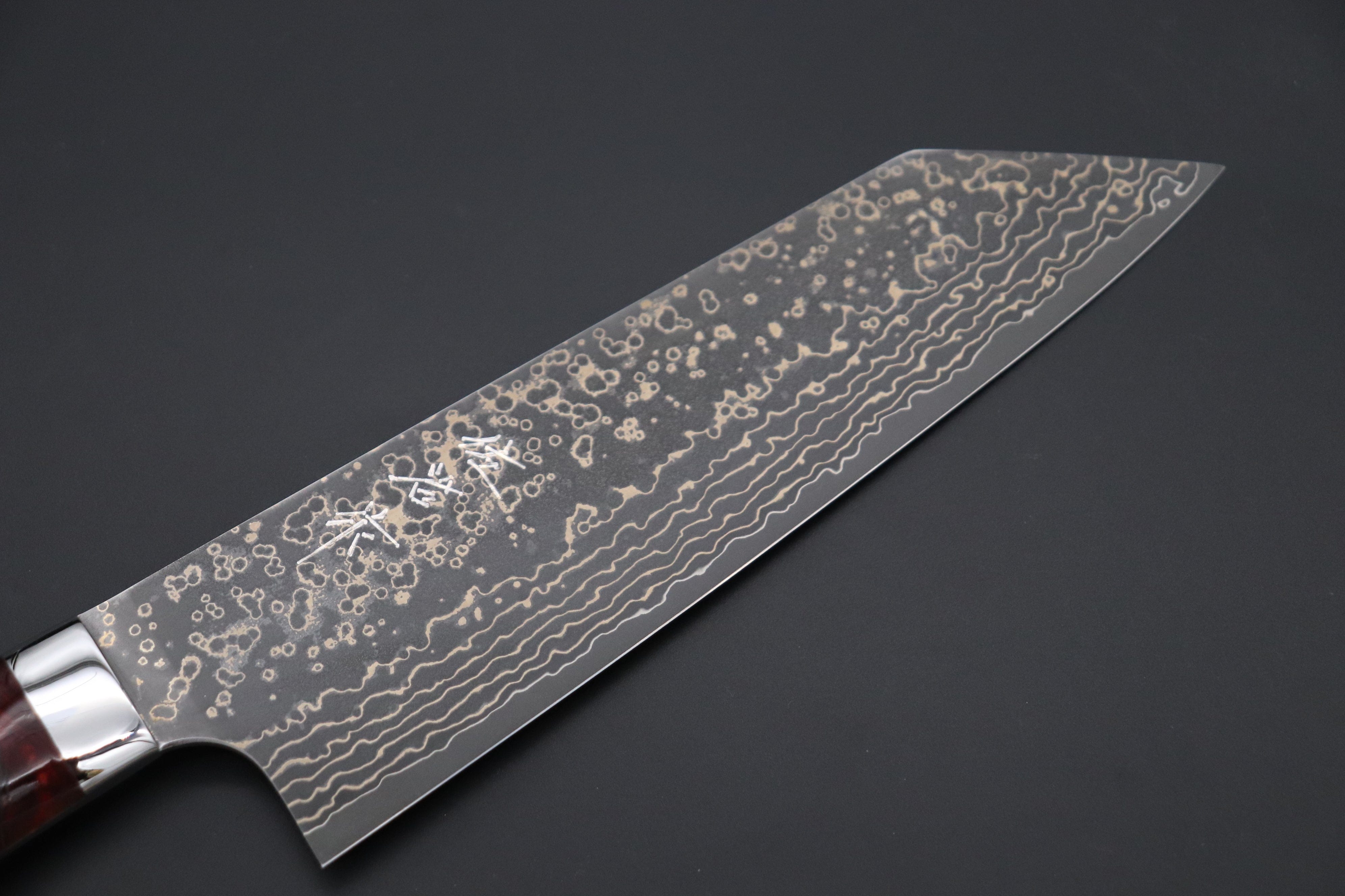 Knife Model: Takeshi Saji SUMMIT ― Limited Edition Custom Series SMT-1047 VG-10W Multi-Colored Golden-Rainbow Damascus Bunka 175mm