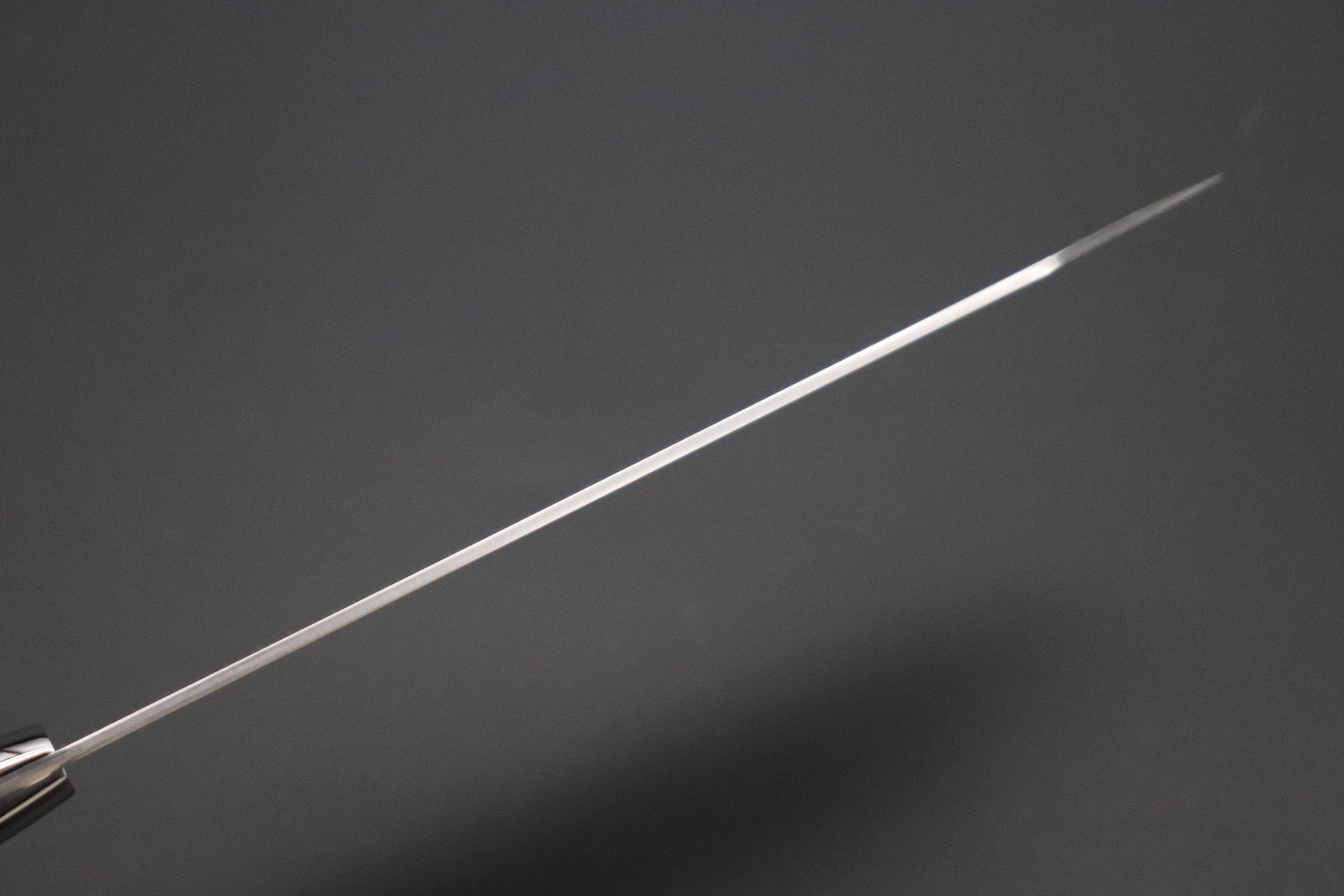Takeshi Saji is a very well respected Master Smith, who specializes in making traditional hammer forged Japanese knives. We are often surprised by the variety of ideas he has and the very distinctive materials and rare steel that he uses for his custom knives.