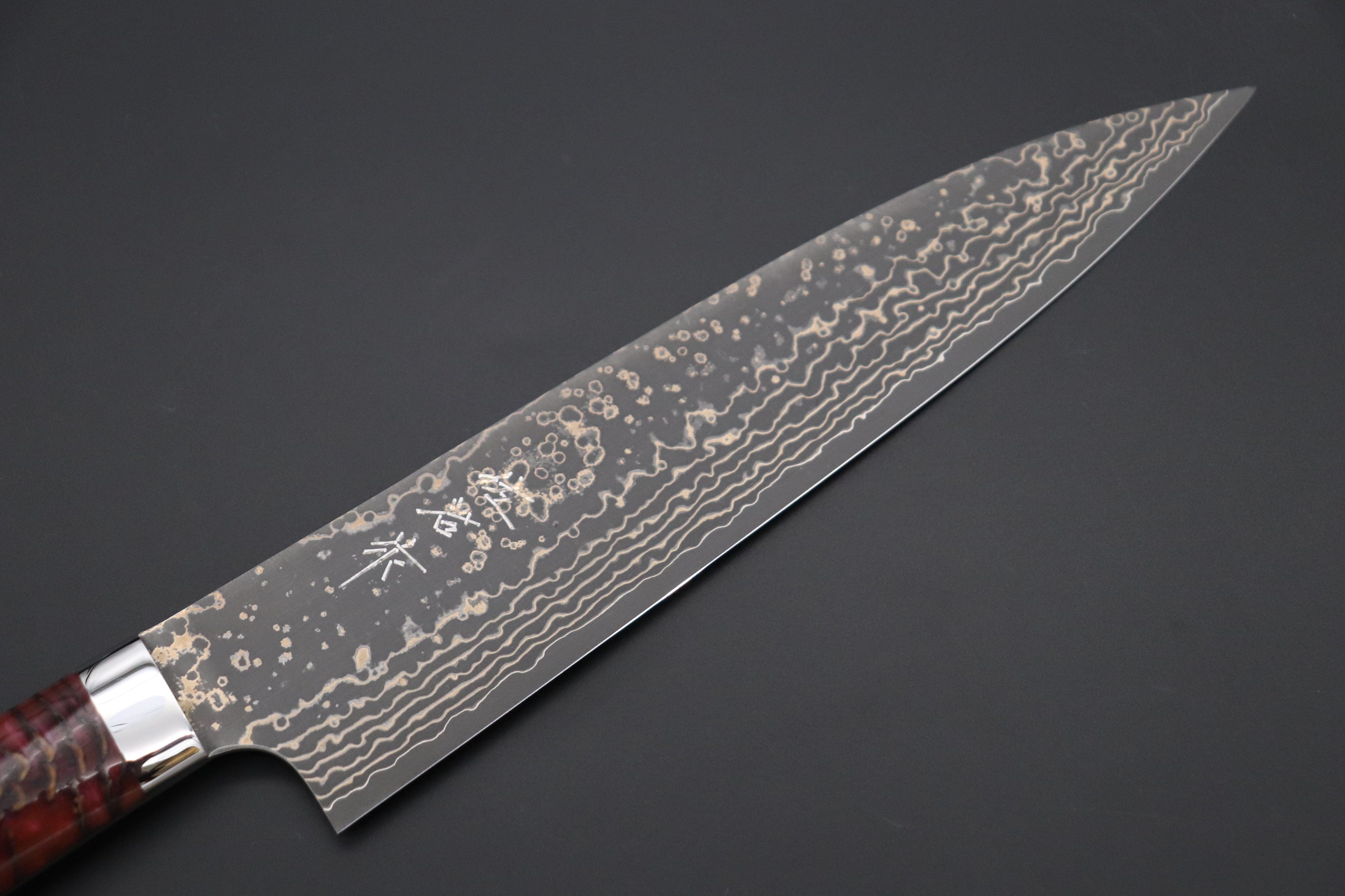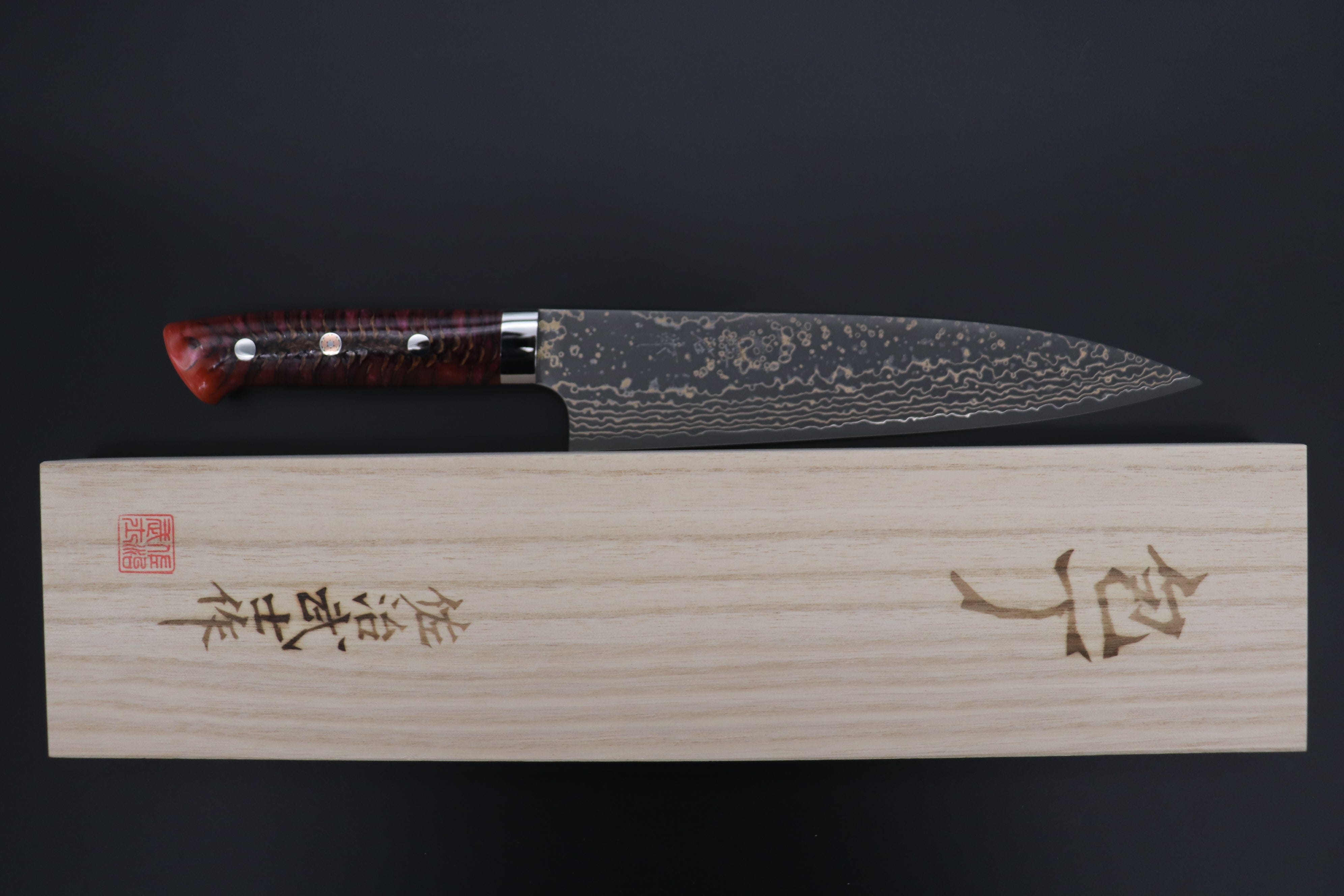 Knife Model: Takeshi Saji SUMMIT ― Limited Edition Custom Series SMT-1055 VG-10W Multi-Colored Golden-Rainbow Damascus Gyuto 210mm