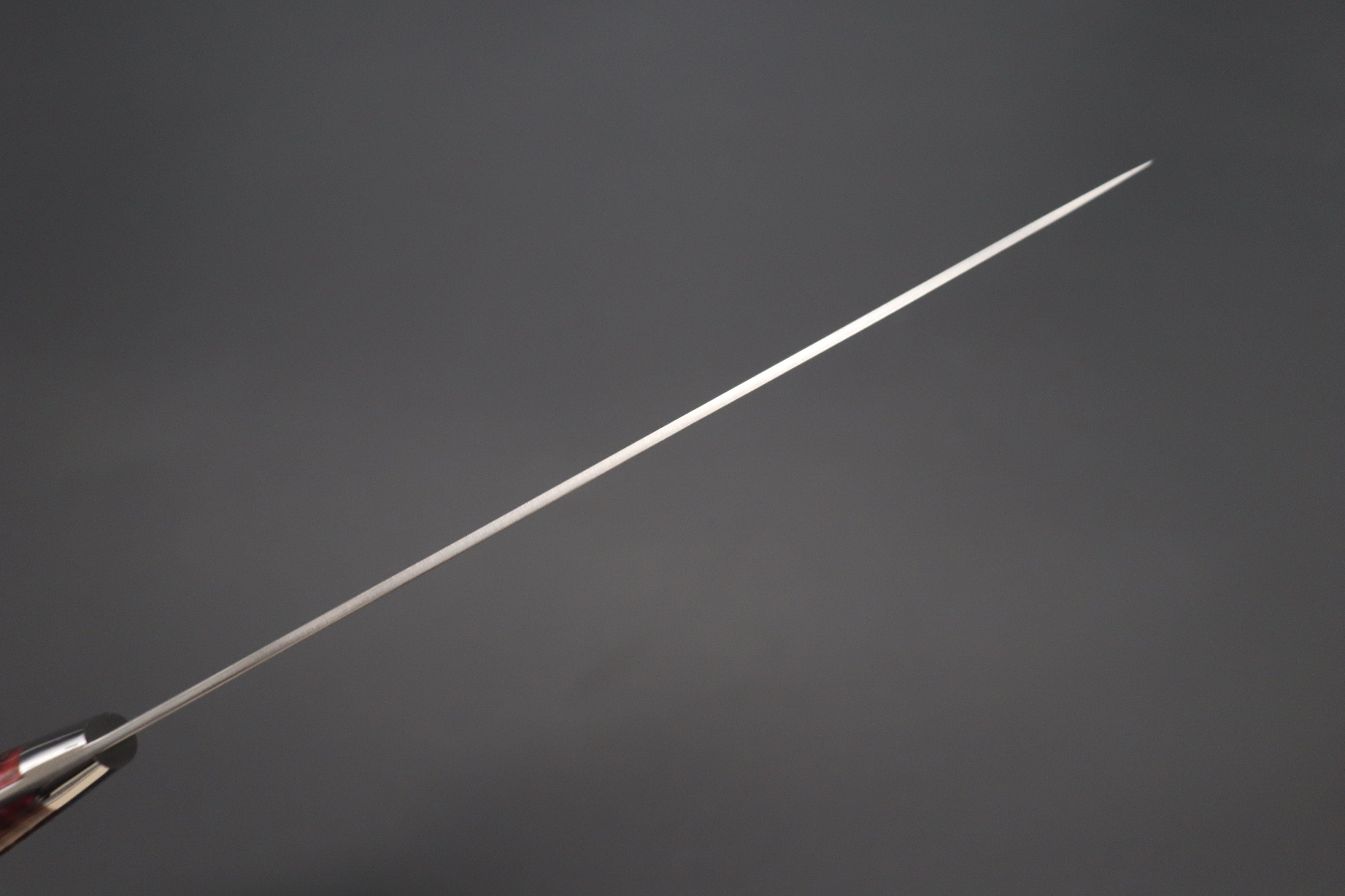 The Gyuto is the Japanese version of the classic Western Chef’s knife. It can be used with a variety of different cutting techniques to achieve a wide range of kitchen tasks and is suitable for cutting the vast majority of meats, fish, vegetables and fruits. The Gyuto is true multi-purpose knife.