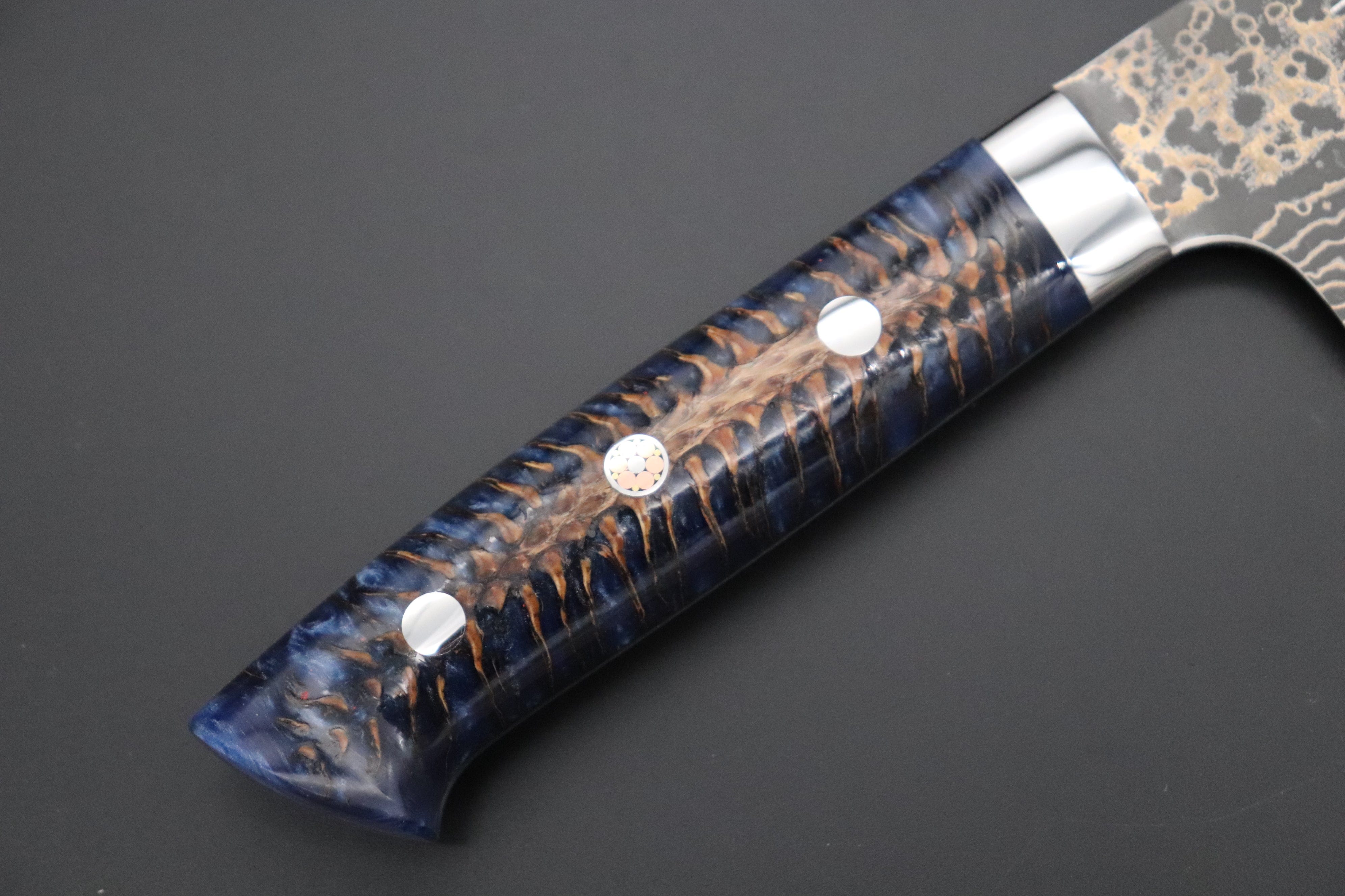 Knife Model: Takeshi Saji SUMMIT ― Limited Edition Custom Series SMT-1057 VG-10W Multi-Colored Golden-Rainbow Damascus Gyuto 210mm