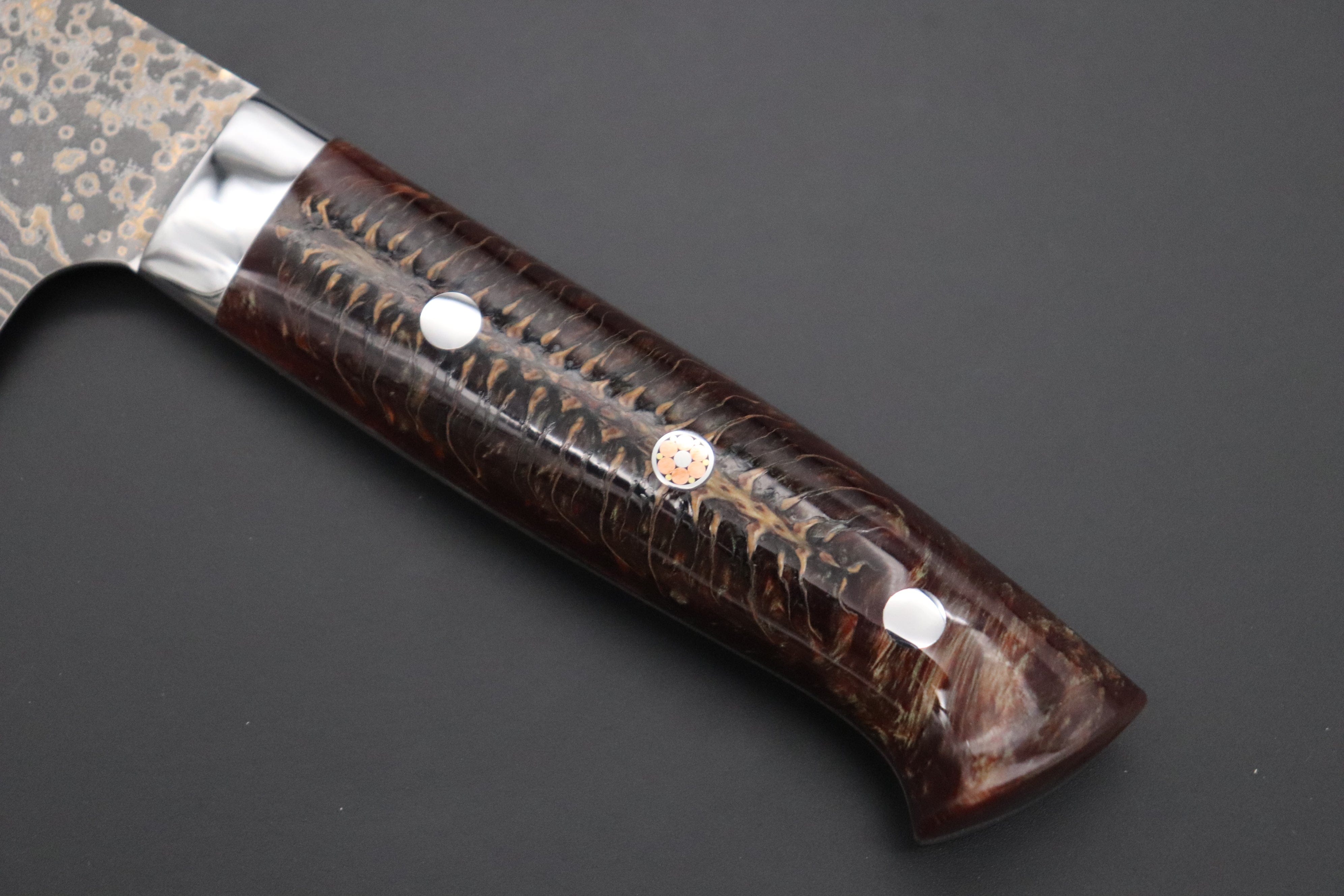 Blade Material: VG-10W Multi-Colored Golden-Rainbow Damascus