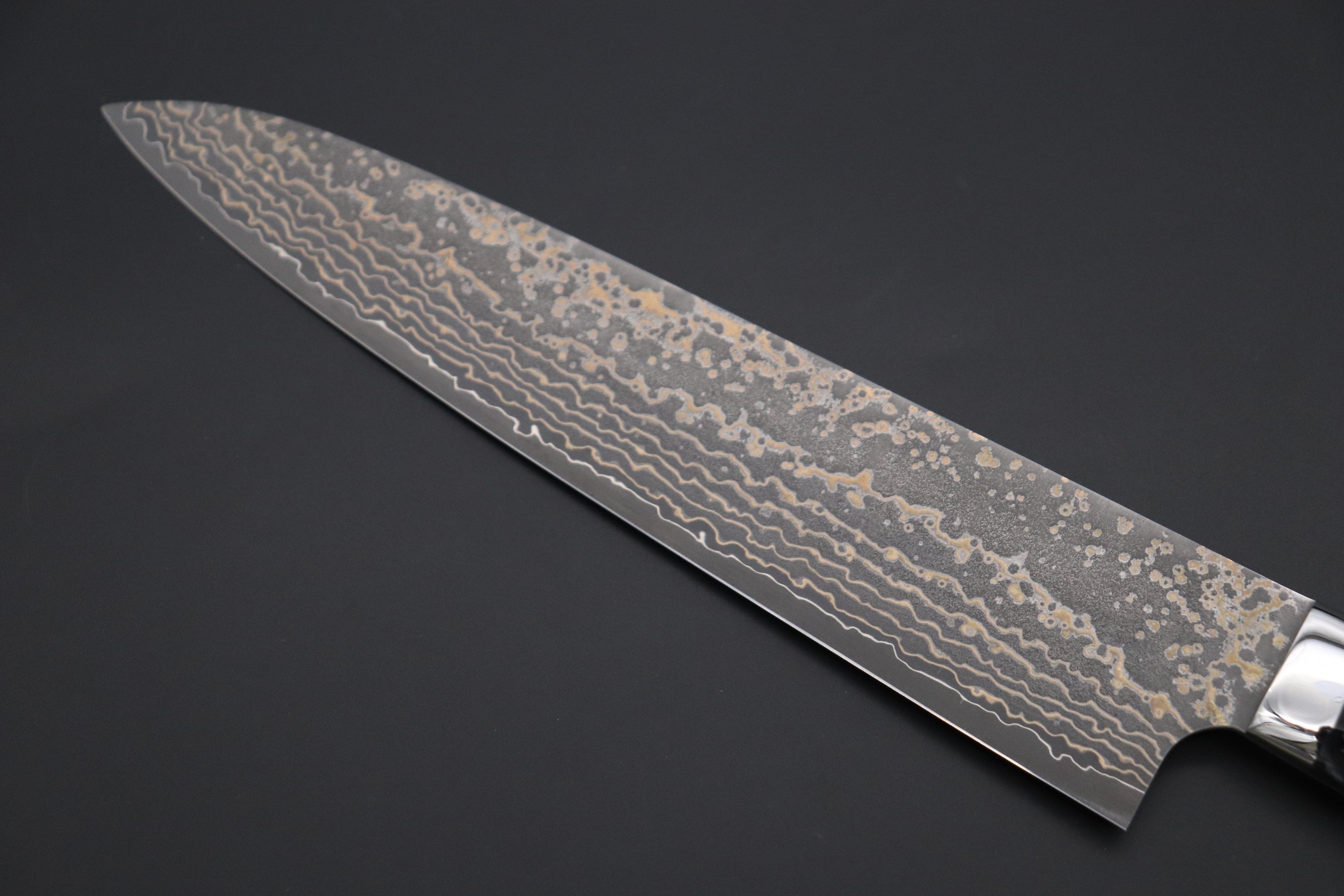 Knife Model: Takeshi Saji SUMMIT ― Limited Edition Custom Series SMT-1066 VG-10W Multi-Colored Golden-Rainbow Damascus Gyuto 240mm