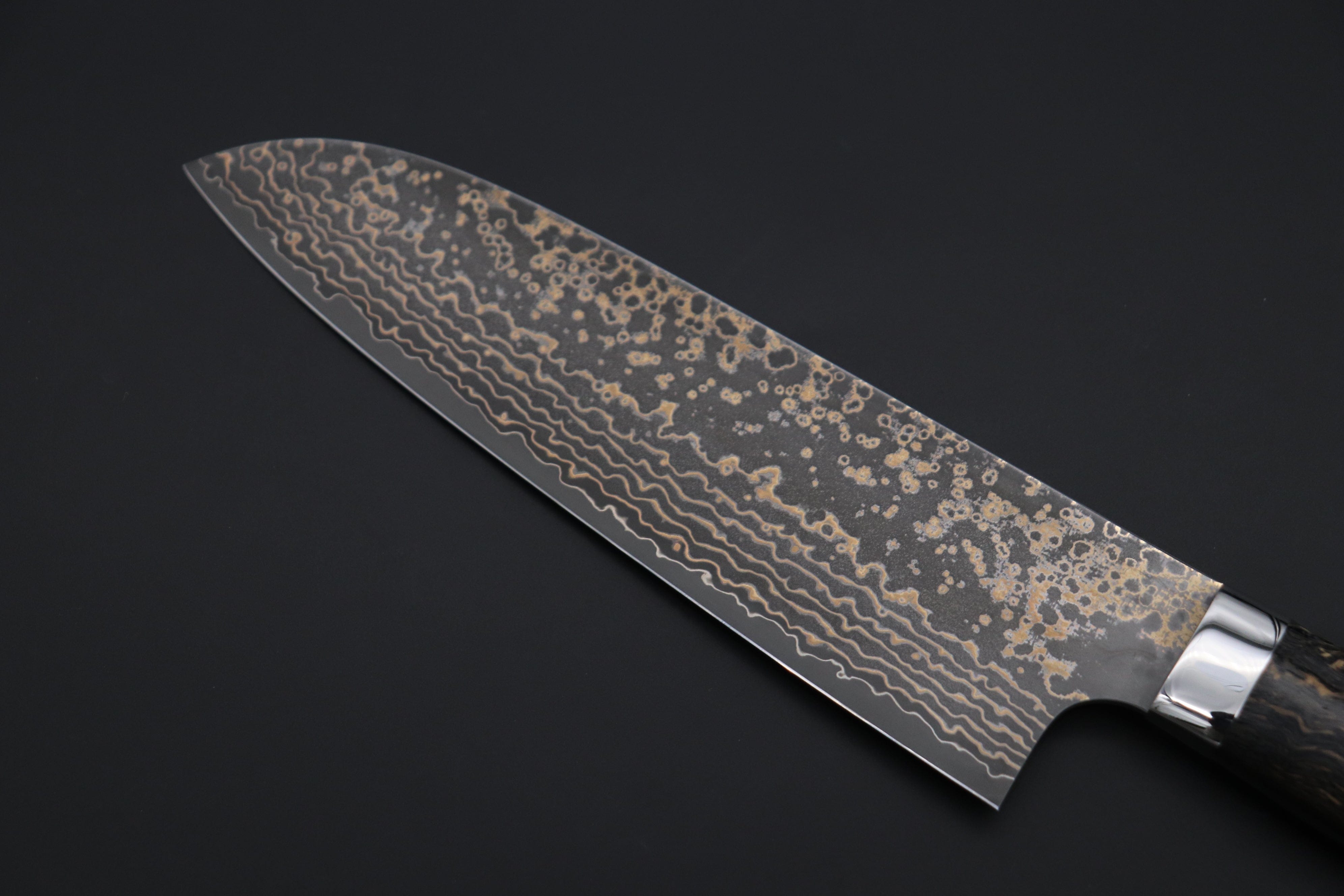 Knife Model: Takeshi Saji SUMMIT ― Limited Edition Custom Series SMT-1069 VG-10W Multi-Colored Golden-Rainbow Damascus Santoku 180mm