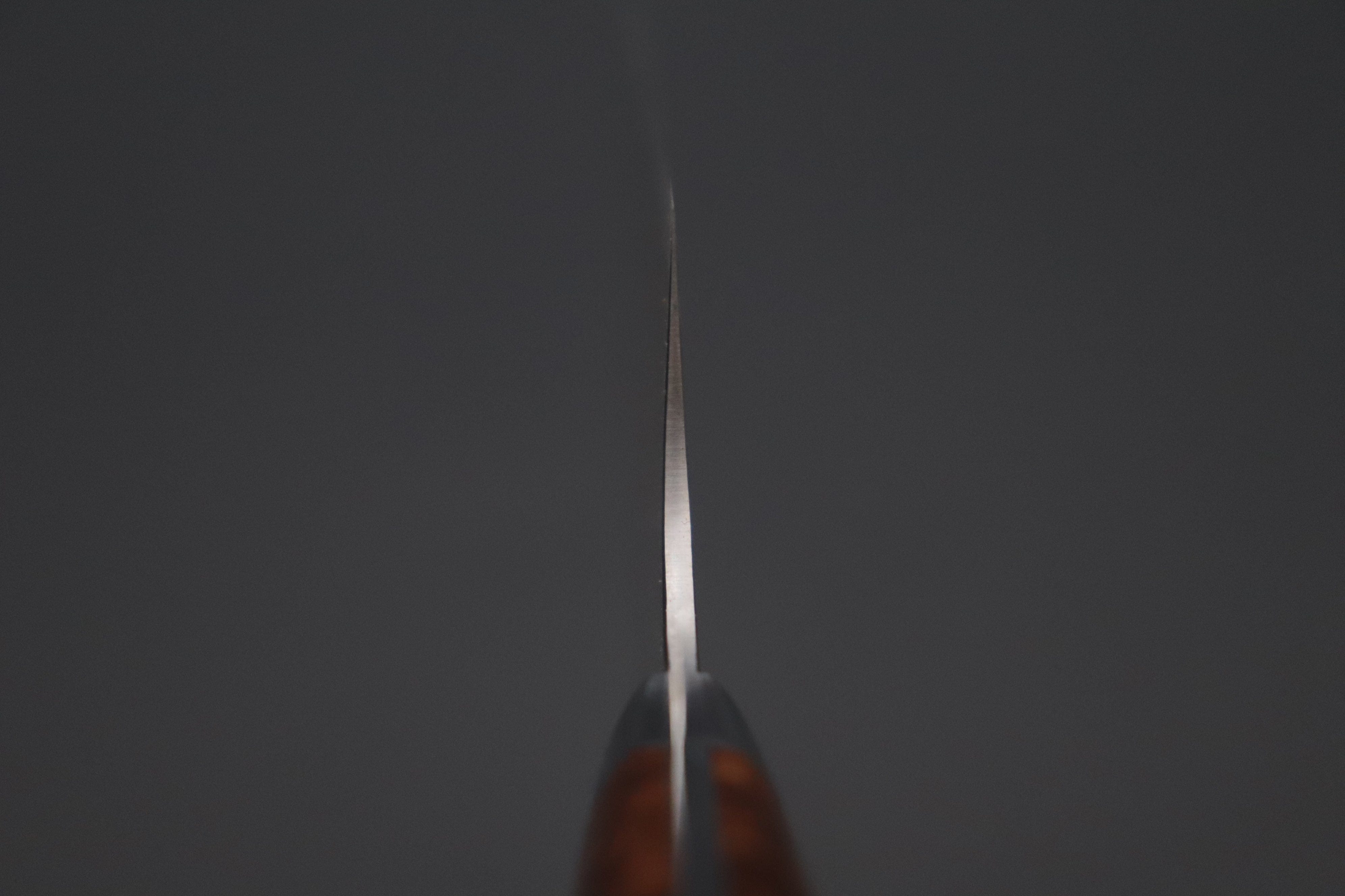 The Nakiri is a double bevel edged knife that is rectangular in profile and has a tall, thin blade. It is popular throughout Japan and is often used by home cooks for quickly and efficiently chopping, slicing or mincing vegetables and fruit. It is becoming increasingly popular with vegetarians.