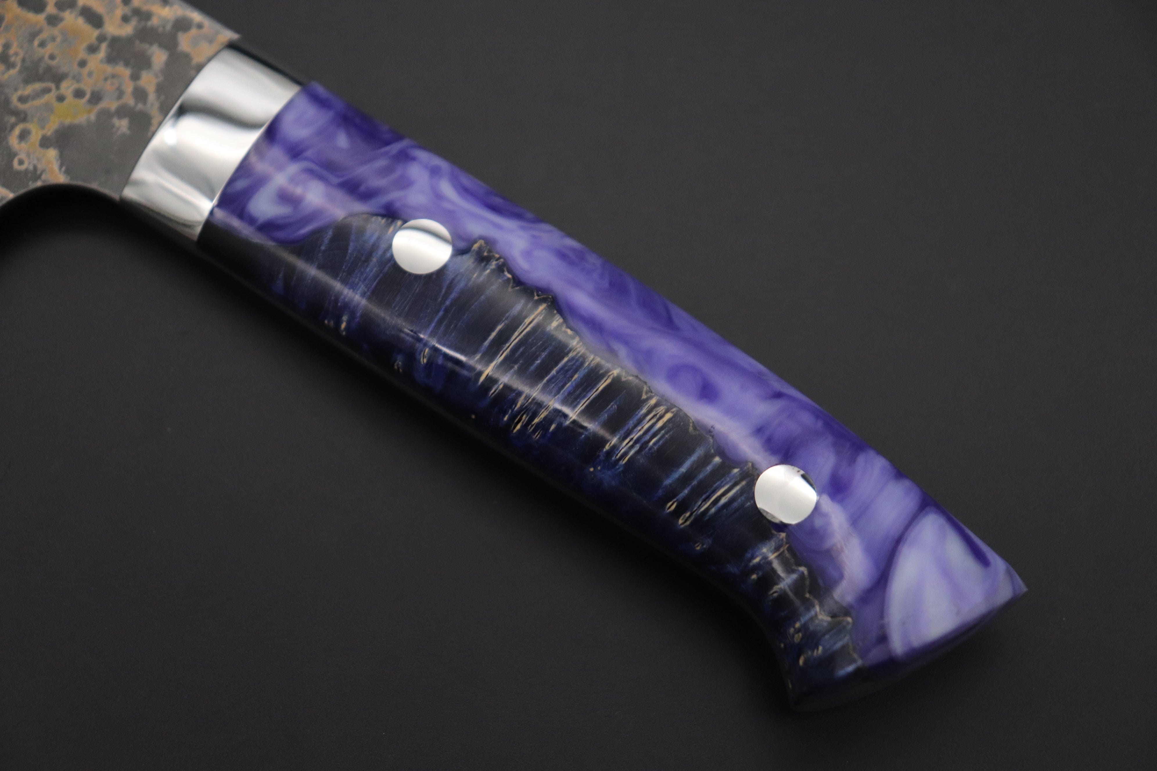 Handle Material: Stabilized Deep Blue Color wood & White & Purple Marble Color stabilized Hybrid wood material Handle with Stainless Steel Bolster