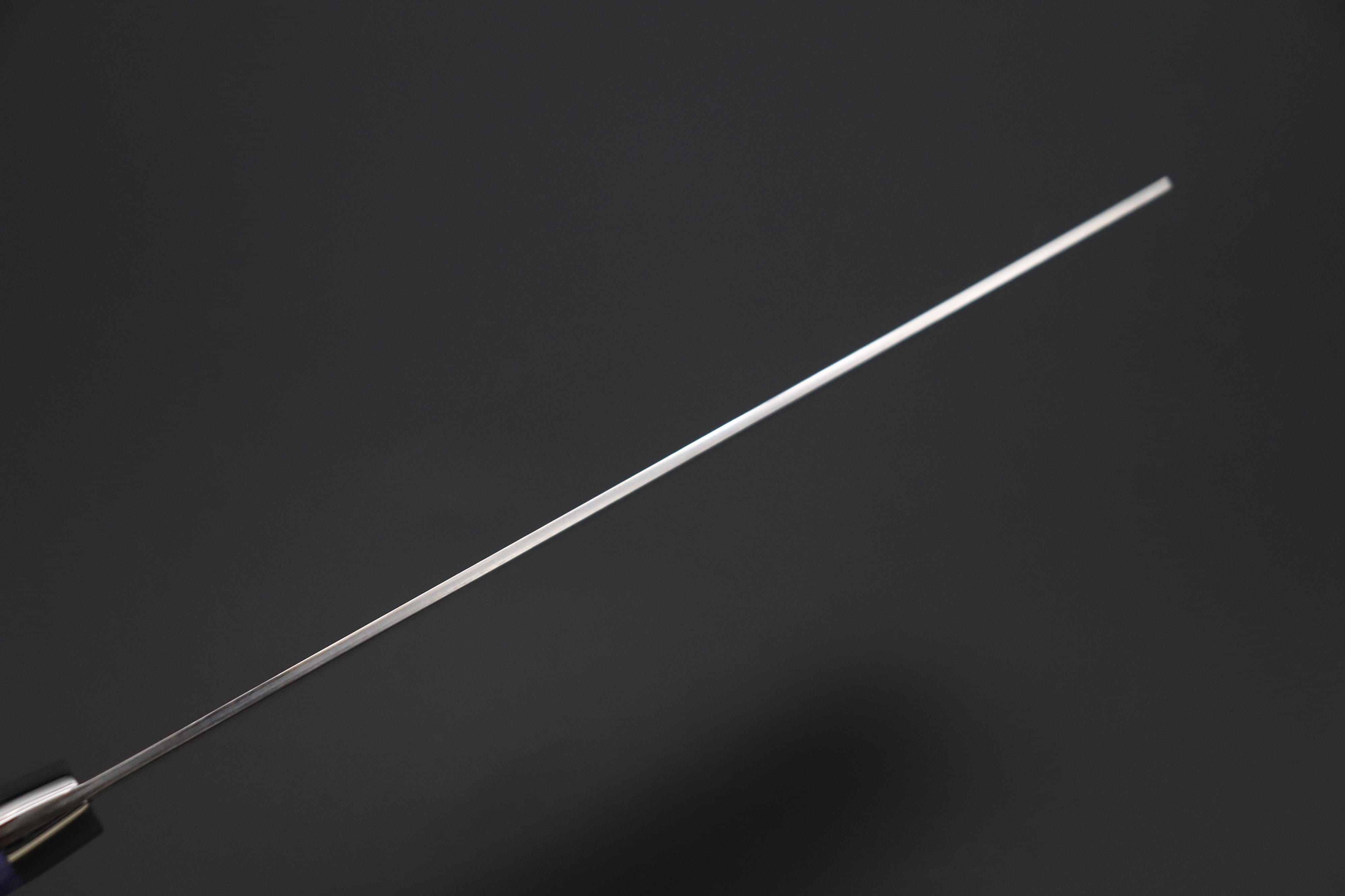 The Nakiri is a double bevel edged knife that is rectangular in profile and has a tall, thin blade. It is popular throughout Japan and is often used by home cooks for quickly and efficiently chopping, slicing or mincing vegetables and fruit. It is becoming increasingly popular with vegetarians.